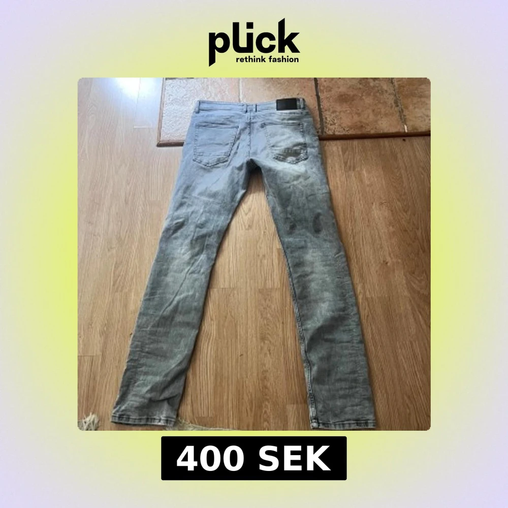Riktigt feta jeans som är grå som har slitningar. Säljer pga storlek ej passar mig.