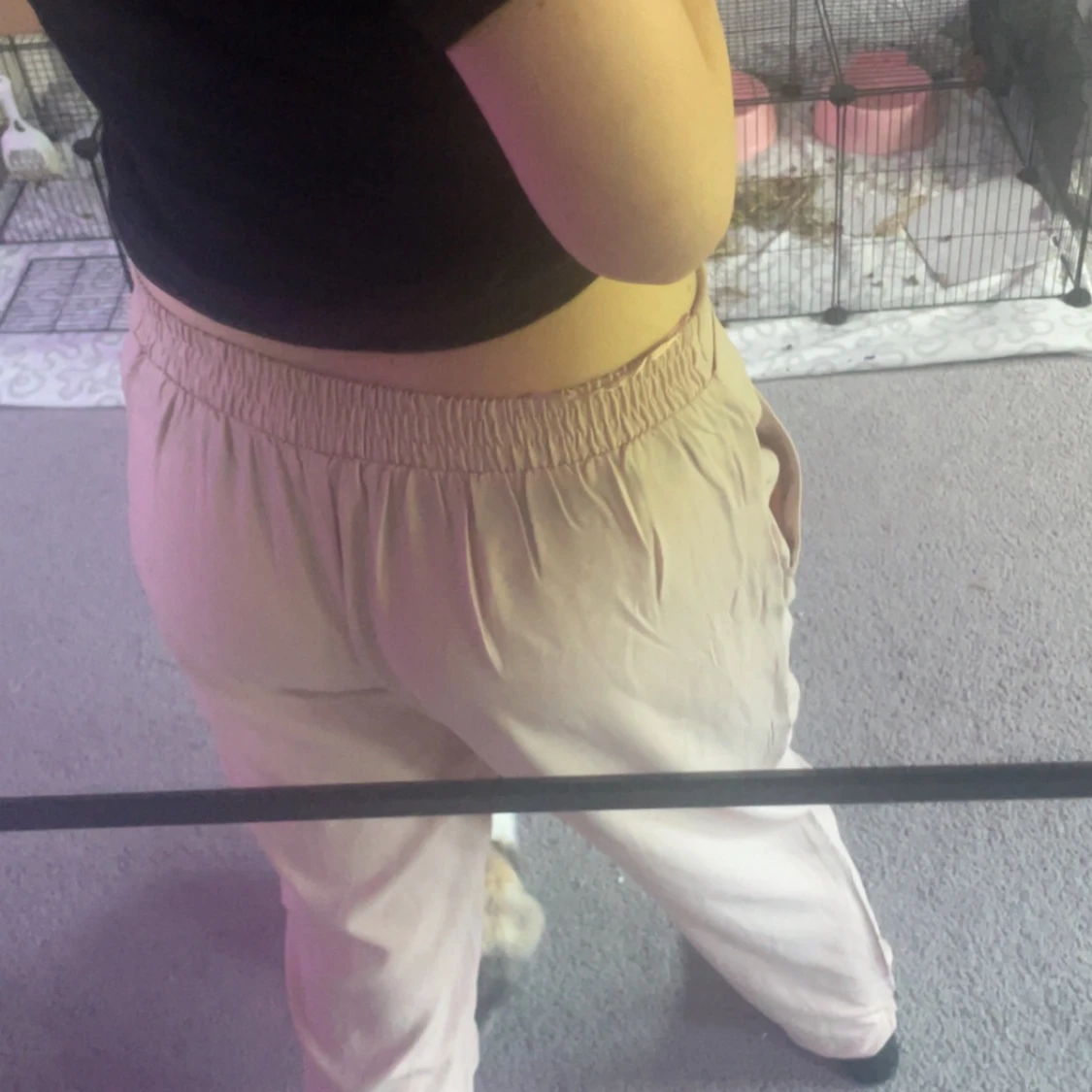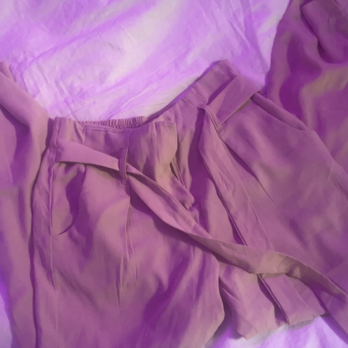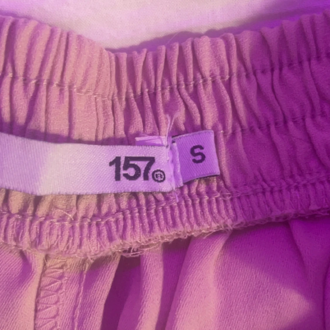 Säljer ett par rosa byxor från 157 i storlek S. De har elastisk midja, breda ben och ett matchande tygbälte. Materialet är mjukt och flowy, perfekt för chill dagar. Byxorna har fickor och en relaxed passform som ger en skön vibe.