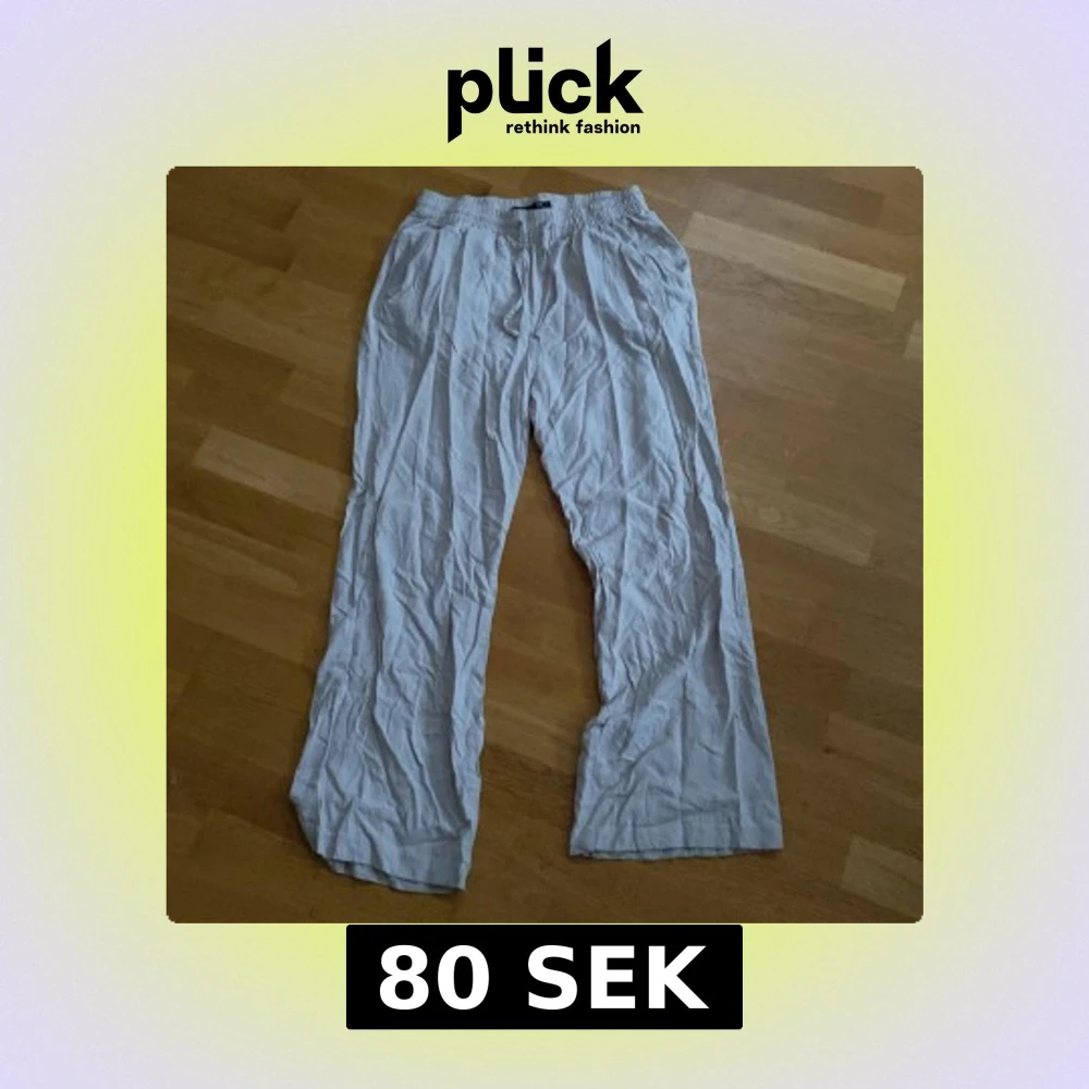 Luftiga beiga linnebyxor från lager 157 med elastisk midja och snörning. Byxorna har raka ben, sidfickor och en bakficka. Du står för frakten, vid mer info skriv