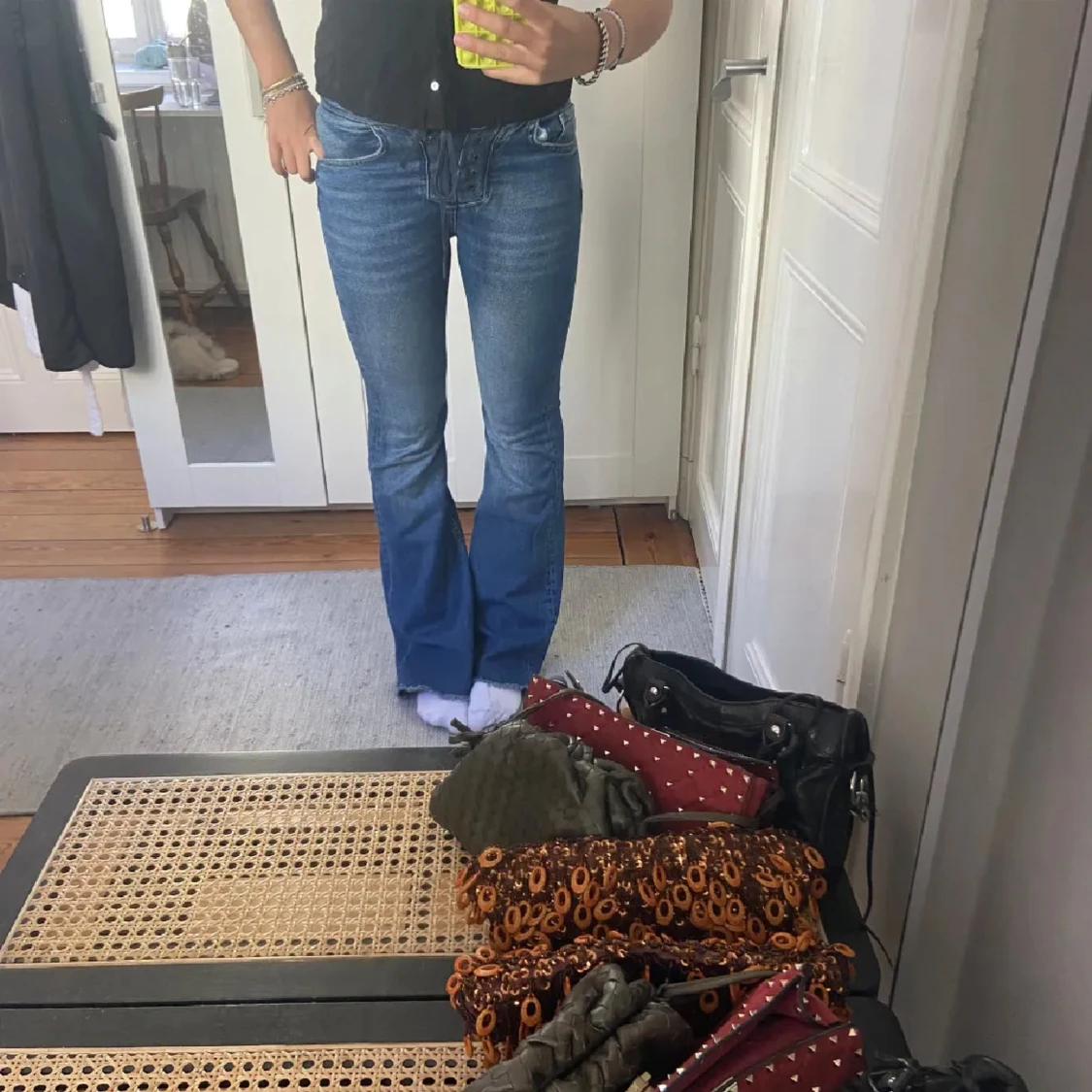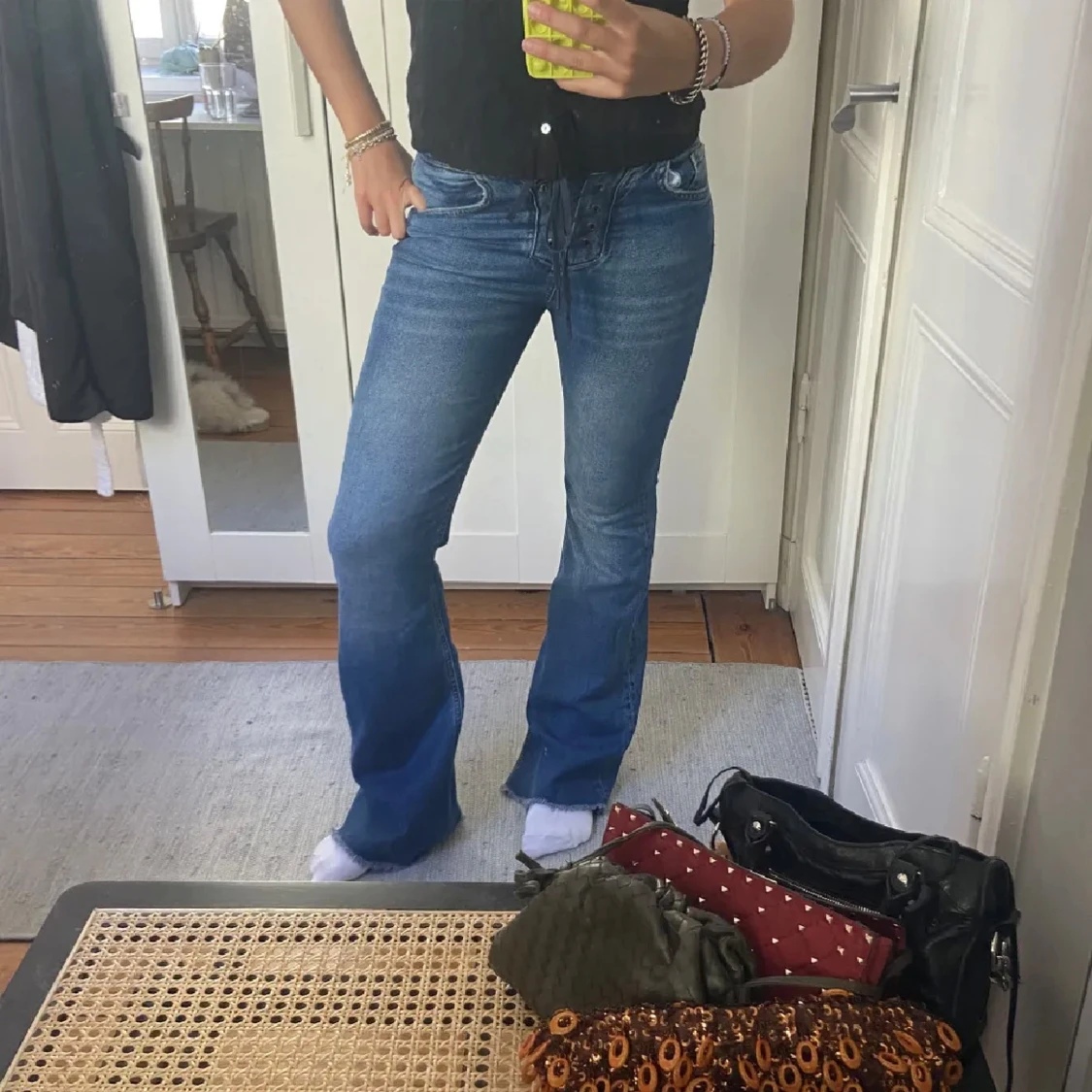 Jättesnygga bootcut jeans med snörning vid gylfen! Från pull and bear