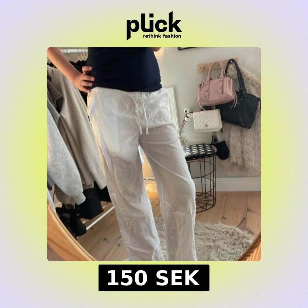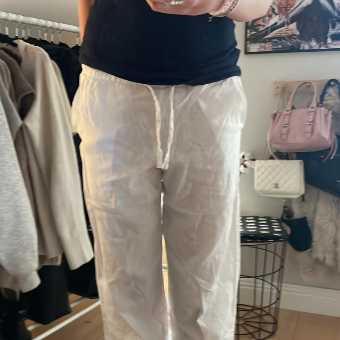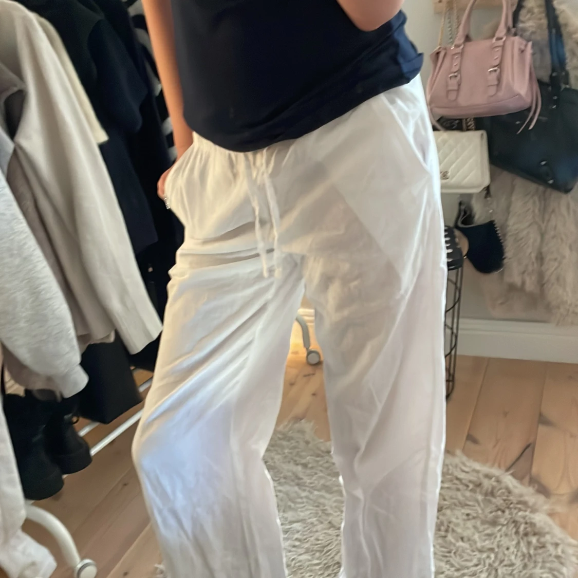 Säljer ett par vita linnebyxor med fickor och snörning ❤️