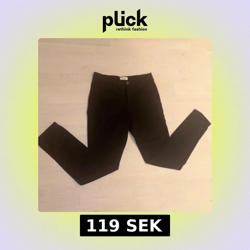 Snygga svarta chinos från Jack & Jones Pants Studio i storlek 31/34. Klassisk rak passform med knapp och dragkedja i midjan. Perfekta för en clean och stilren look. Tillverkade i mjukt bomullsmaterial för skön känsla hela dagen. Aldrig använda nypris 399