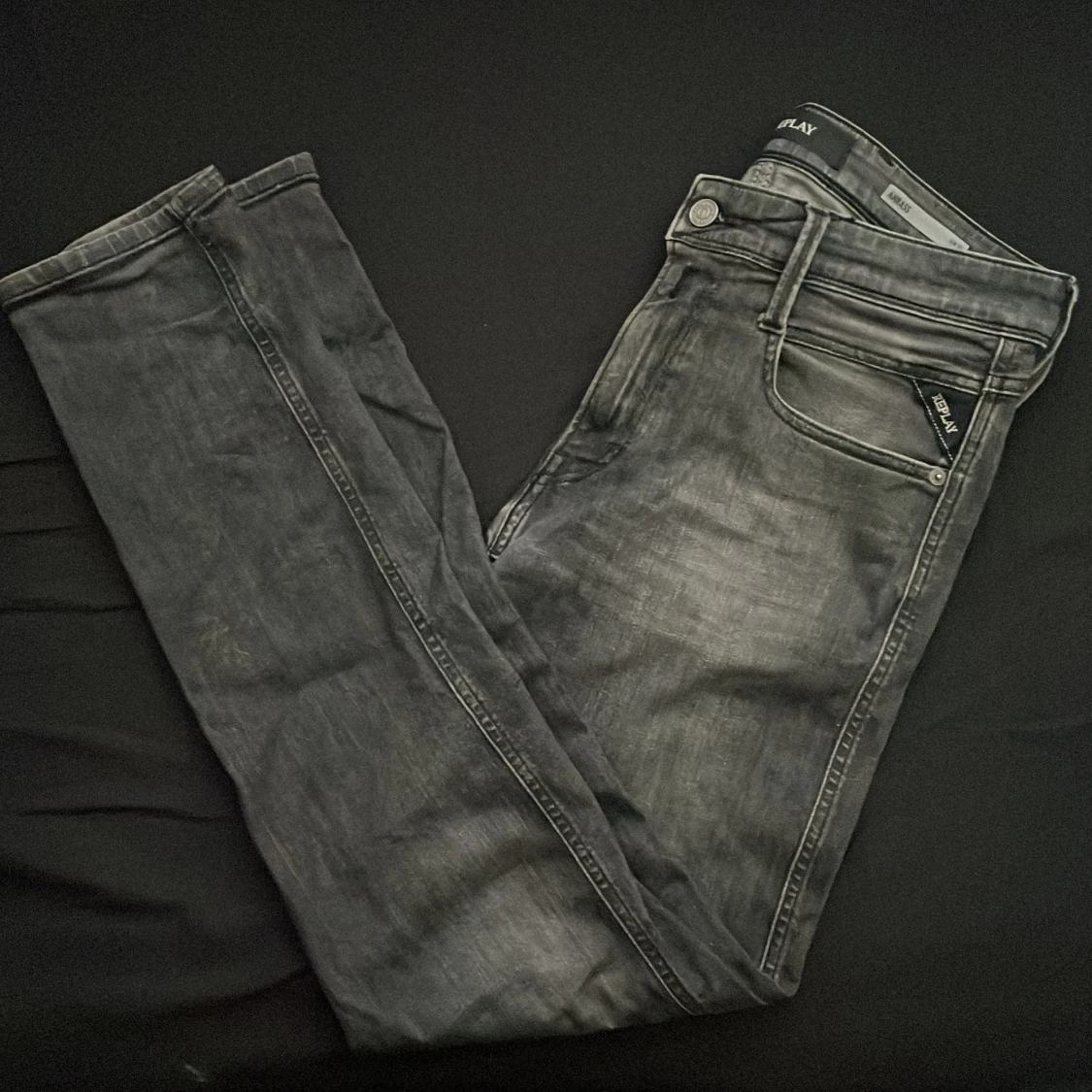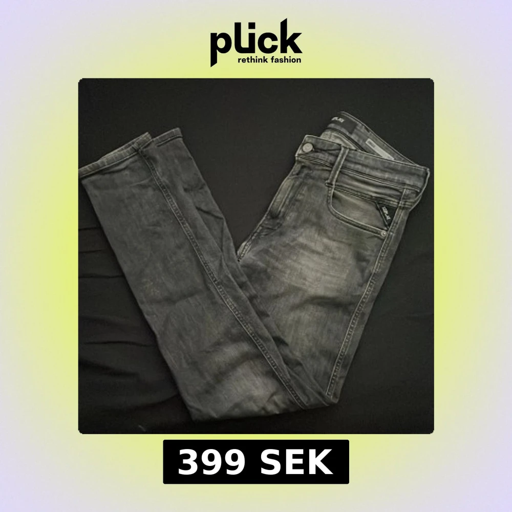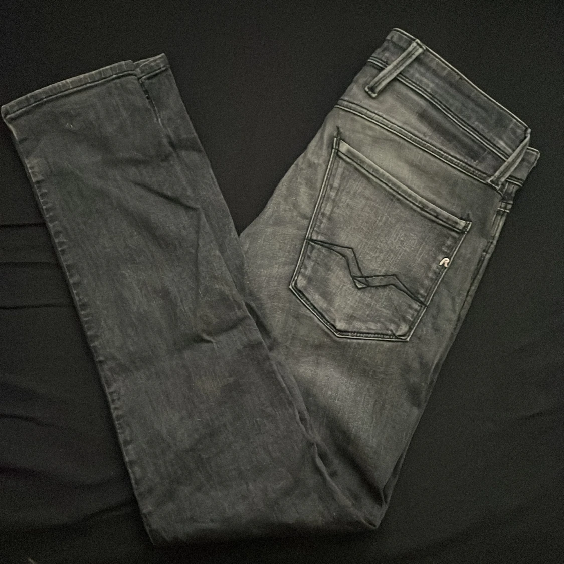 Snygga grå jeans från Replay med en modern look. De har en klassisk femficksdesign och en diskret Replay-logga på bakfickan. Perfekta för en stilren vardagsoutfit.