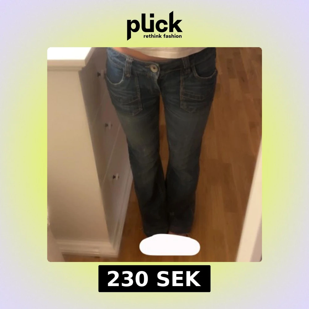 Snygga blå low rise jeans från Only med bootcut-ben. Jeansen har fickor både fram och bak. Storlek xxs. De är sydda i midjan med inget man lägger märket till. Skriv för mått eller andra frågor!💕