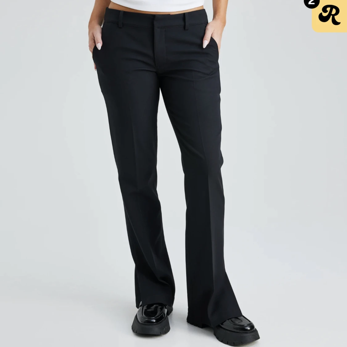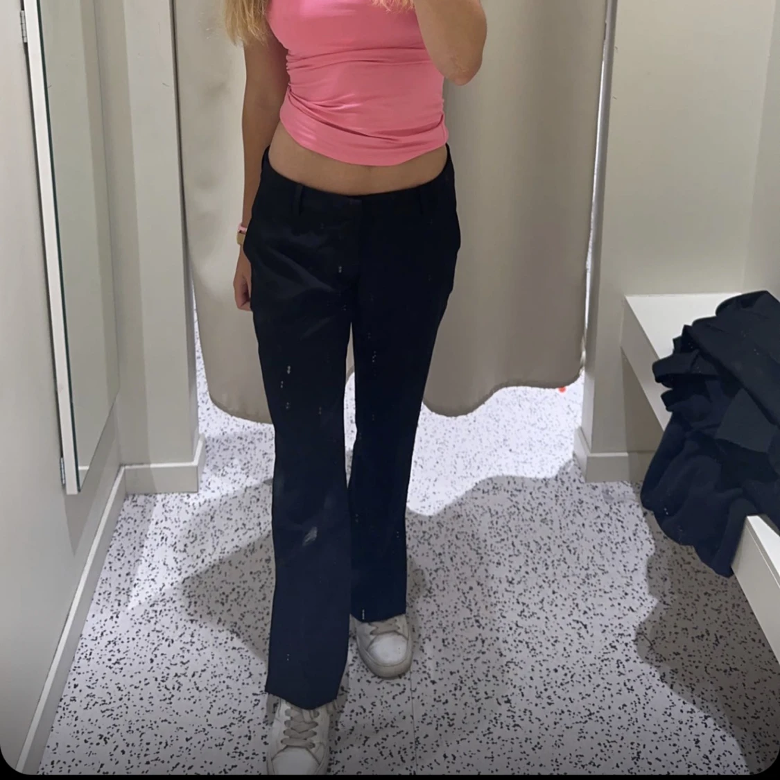 säljer mina jätte fina svarta lågmidjade kostymbyxor i modellen veta petite med slits från bikbok. är i nyskick ❤️