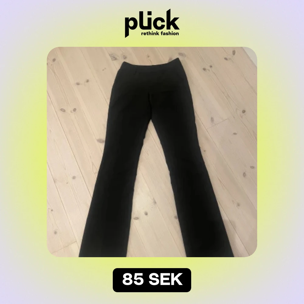 Snygga svarta kostym byxor från Bikbok i storlek 34 tall. Dom har dock en liten färg fläck på sig men de är inget man ser tydligt.