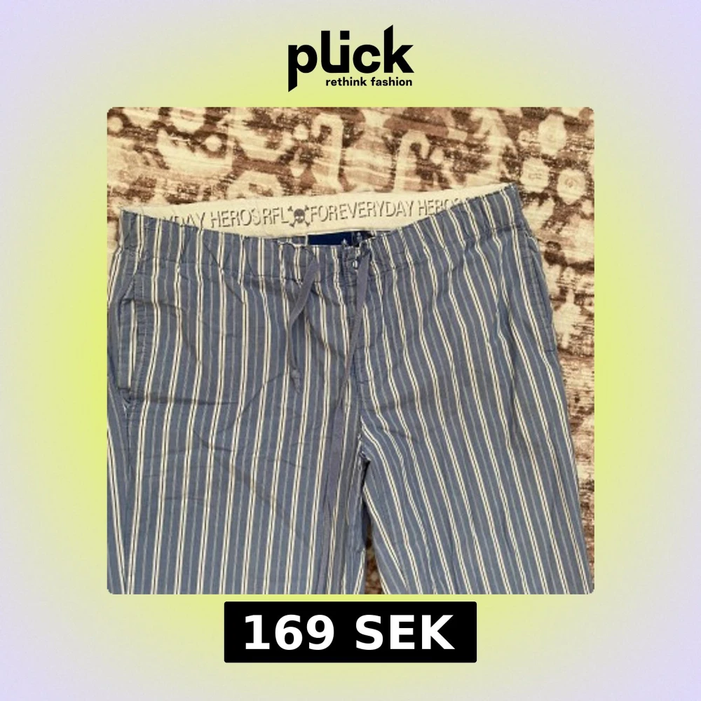 Blå pyjamasbyxor med vita vertikala ränder från RFL. Byxorna har elastisk midja med snörning och raka ben. Perfekta för chill dagar eller när du vill ha en avslappnad look. Lätta och luftiga i materialet.💛