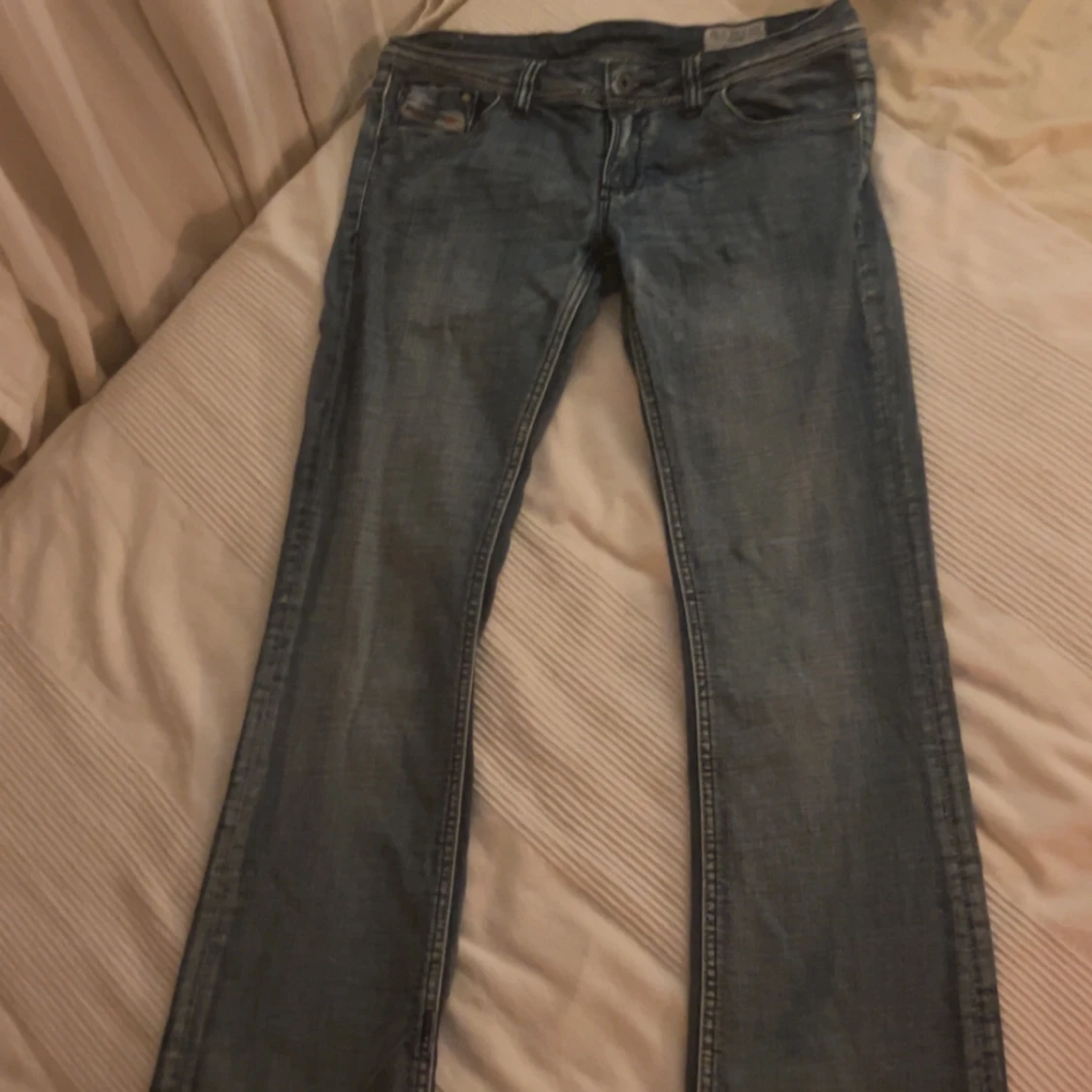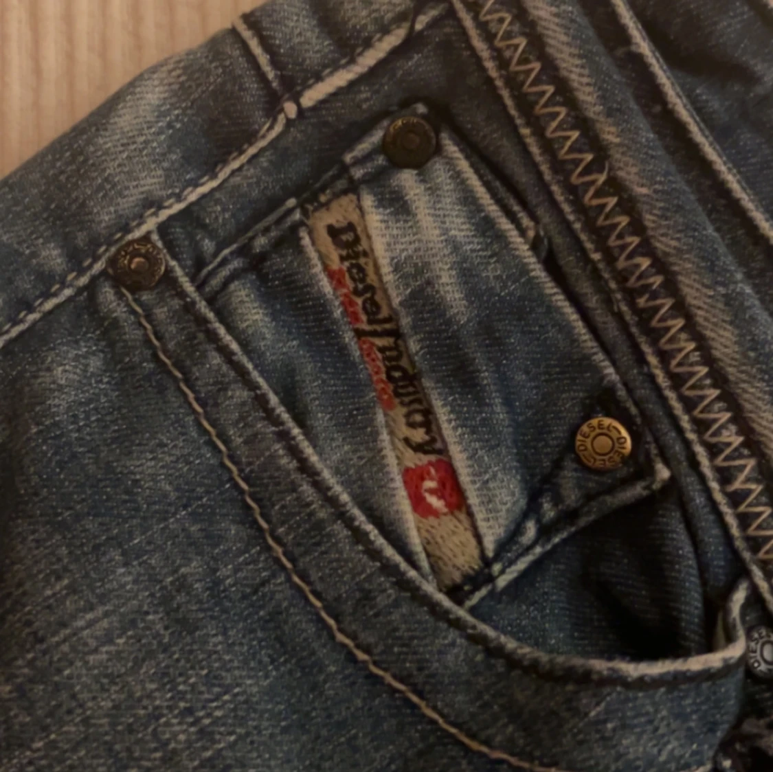 Säljer dom här skit snygga jeansen från diesel! Är toppen skick förutom pytte lite slitage nere vid ena benet Pris kan diskuteras!