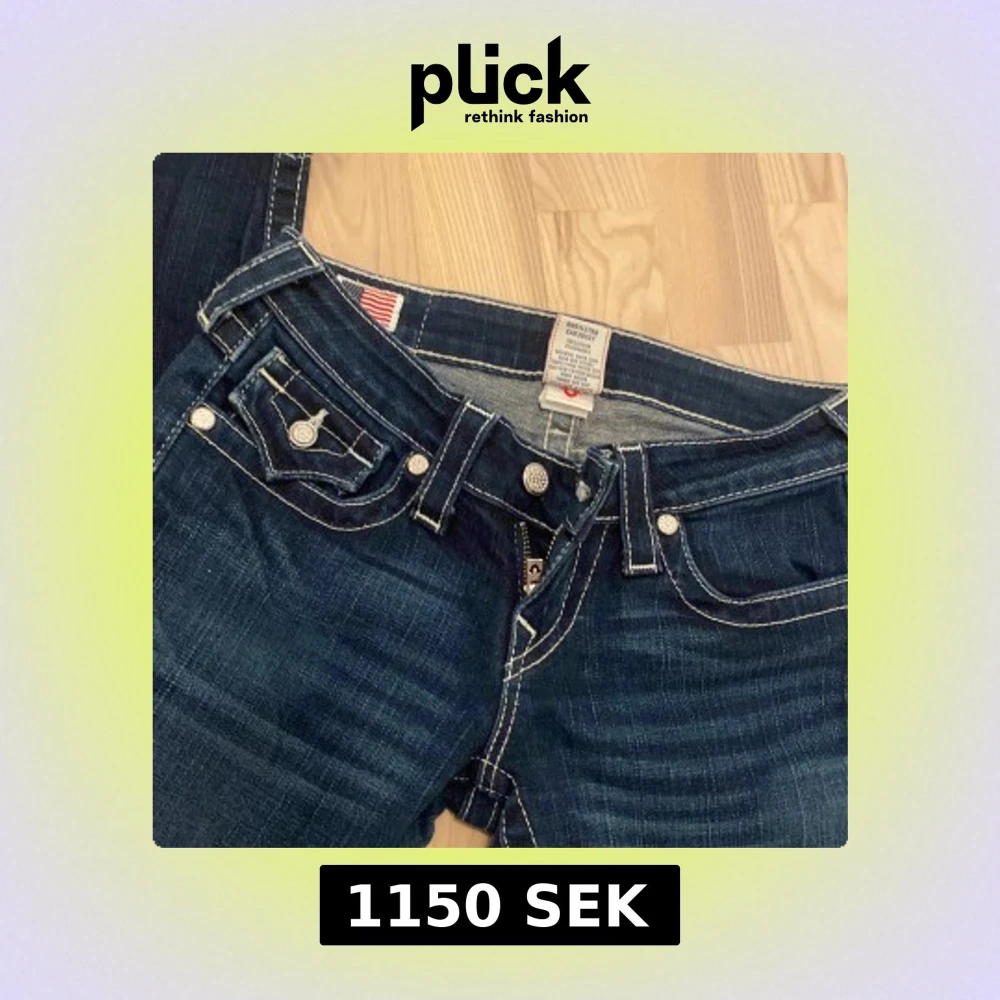 Snygga mörkblå trueys jeans med vita sömmar och knappar med pärlor på. I strl 26 och Inga skador förutom att jag har sprättat upp ena benet som man kan se på sista bilden och pris kan diskuteras❤️