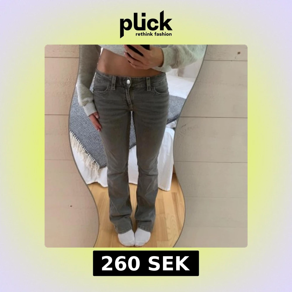 Snygga grå jeans från Gina Tricot i bootcut-modell. Jeansen har klassisk femficksdesign, med coola detaljer på bakfickorna och normal passform. Tillverkade i mjukt denimtyg som sitter skönt och ger en stilren look. Säljer då jag har har för många jeans! 💋om du undrar över något så fråga bara.