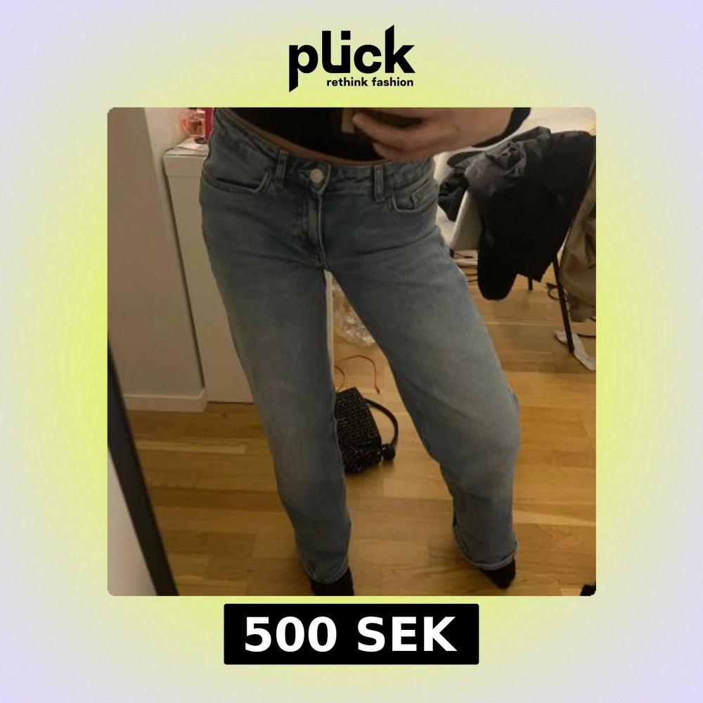Säljer dessa snygga jeans från märket only. Kommer tyvärr ej till användning. Storleken är lite oklar men tycker de sitter som en S/M. De är mid waist och med en loose passform. Knappast använda💕skriv gärna om ni har frågor kring mått osv!