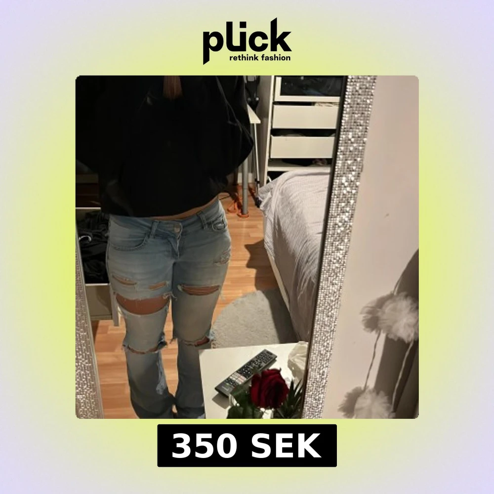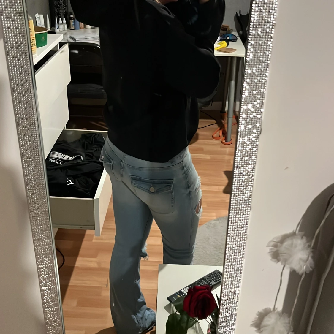 Säljer dessa jeans från Nelly som jag gjorde några hål i, skit snygga men är för långa för mig. Jeansen har gått sönder där bak när jag skulle dra upp dom men går enkelt att sy ihop, och slitna där nere där av priset