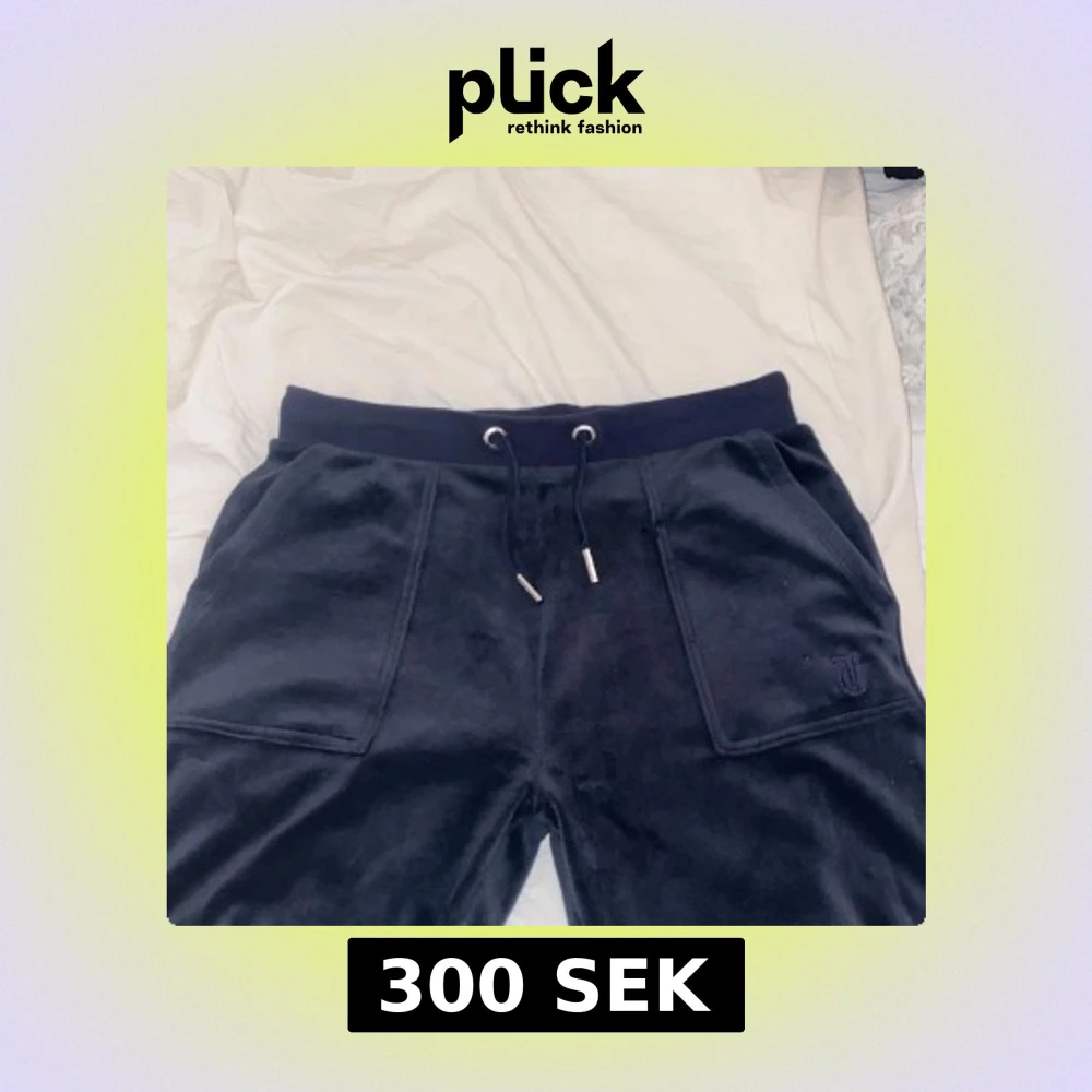 Snygga märkblåa jättesköna mjukisbyxor från Juicy Couture. Byxorna har en mjuk och bekväm känsla. De ser lite svarta ut på bilden men det är för att det är mörkt, men de är mörkblåa. Inga defekter alls och priset kan diskuteras. Köptes för 1100kr säljer för 300kr
