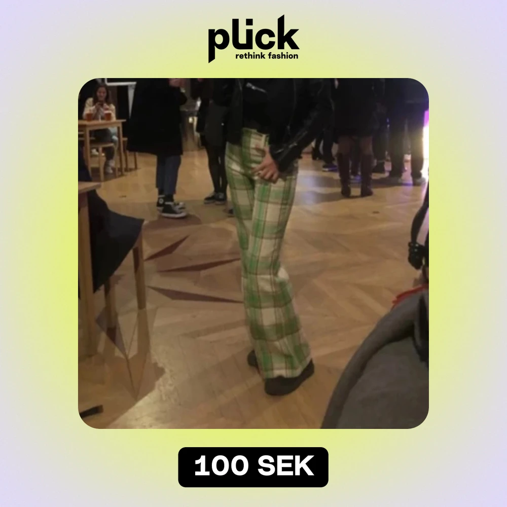 Ett par supersnygga grön/vit rutiga bootcut byxor, väldigt sköna och sitter som en smäck! Bara att skriva om du har frågor ❤️ Material: 75% viskos 25% linne Mått: Midja 32cm Längd 95cm Obs finns defekt