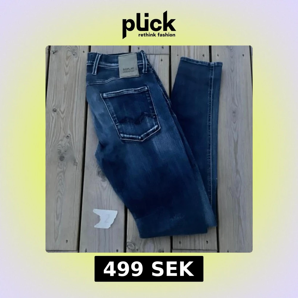 Snygga Replay Hyperflex jeans i mörkblå tvätt med slitningar och kontrastsömmar. Klassisk femficksmodell med logga på fickan och bak. Stretchigt material för extra komfort och smidig passform. Perfekta för dig som gillar en modern och avslappnad stil.