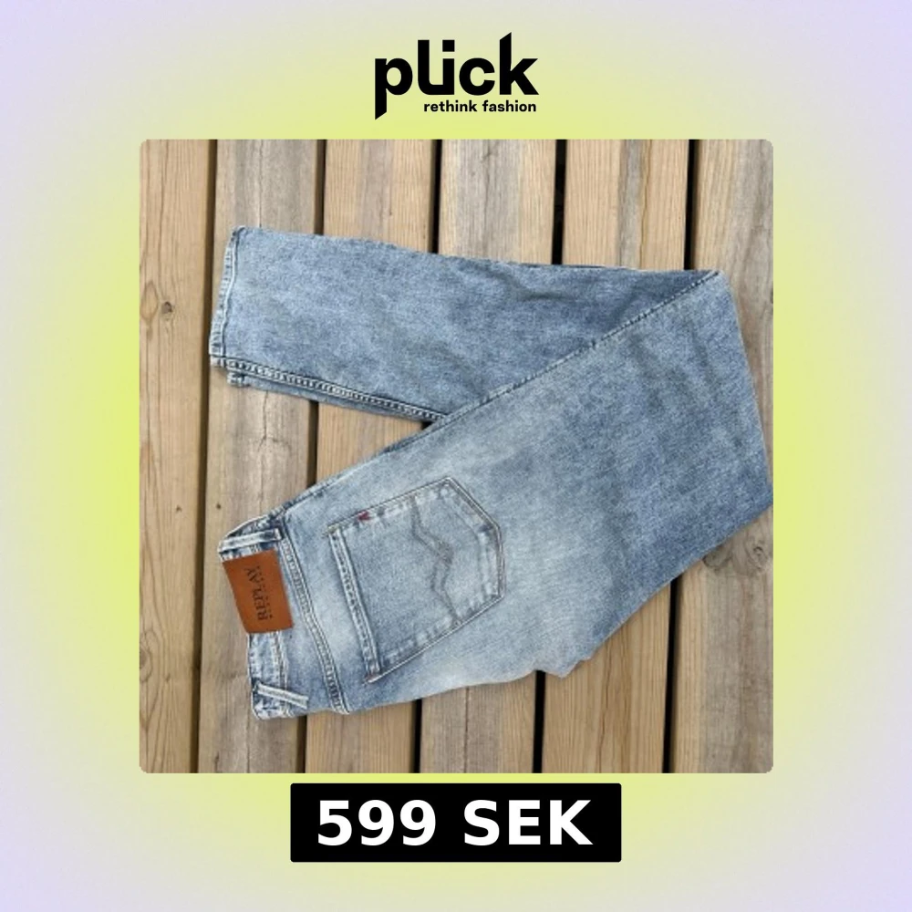 Snygga ljusblå Replay Anbass jeans med klassisk femficksdesign och tydlig tvättad effekt. Jeansen har normal passform, raka ben och detaljer som läderpatch bak och Replay-logga vid fickan. Perfekta för en avslappnad och trendig look.