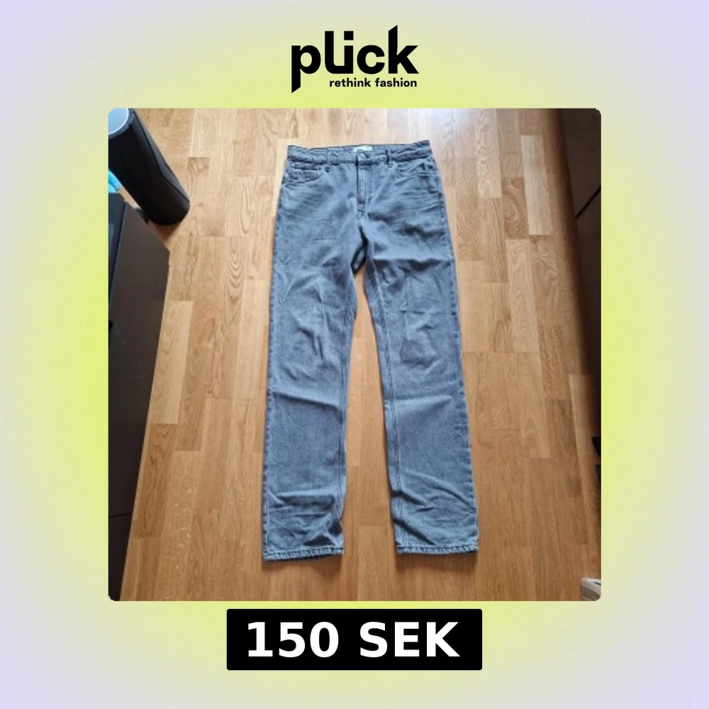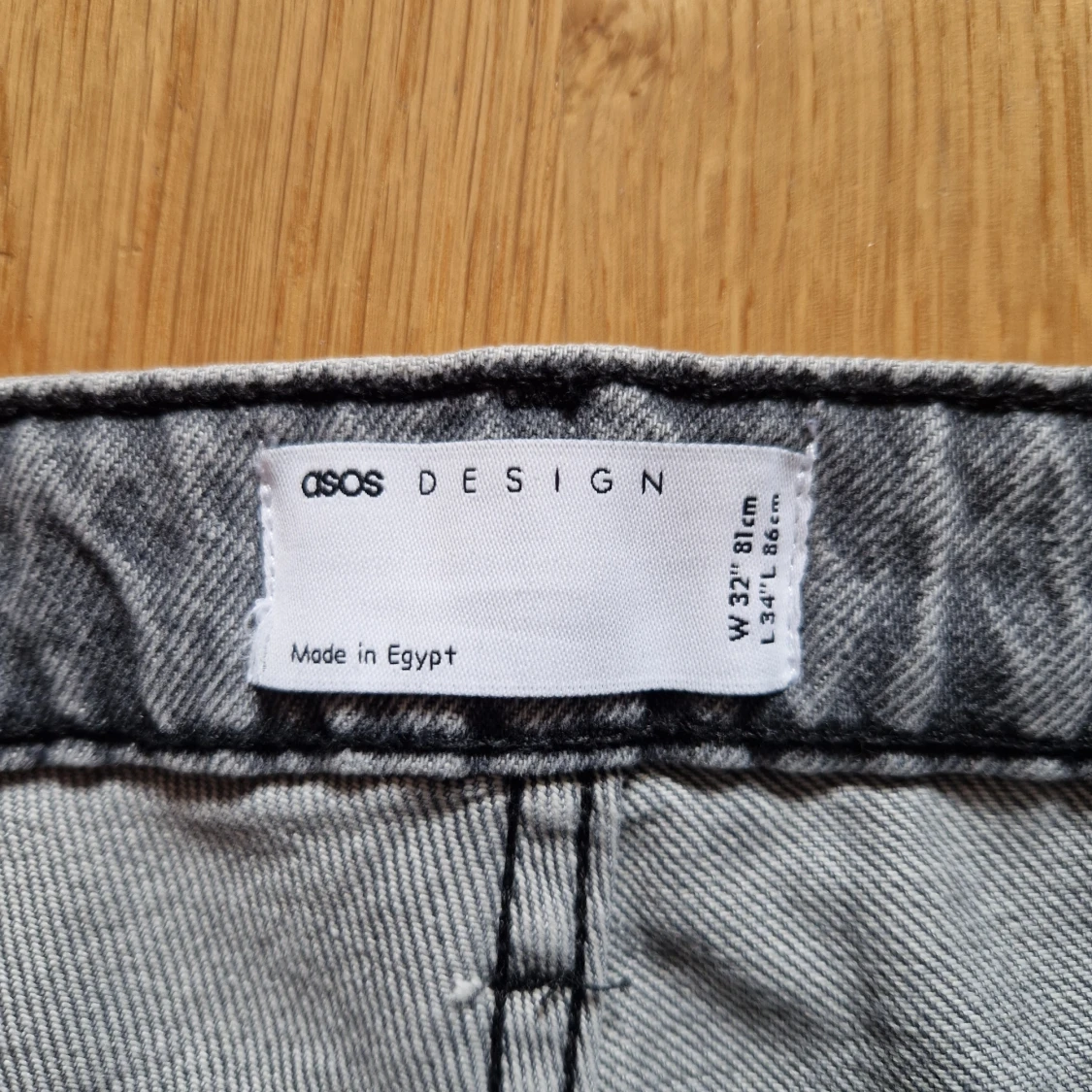 Säljer ett par grå jeansbyxor från ASOS DESIGN i klassisk straight fit. Byxorna har fem fickor, gylf med dragkedja och knapp samt bälteshällor. Perfekta för dig som gillar en enkel och stilren look.