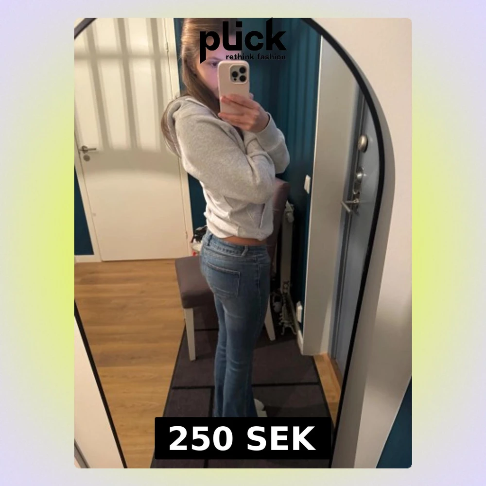 Väldigt fina blå lågmidjade jeans med bootcut. Väldigt fin tvätt på de. Sitter bra i längden och jag är 164 cm. Skriv för fler frågor.💗