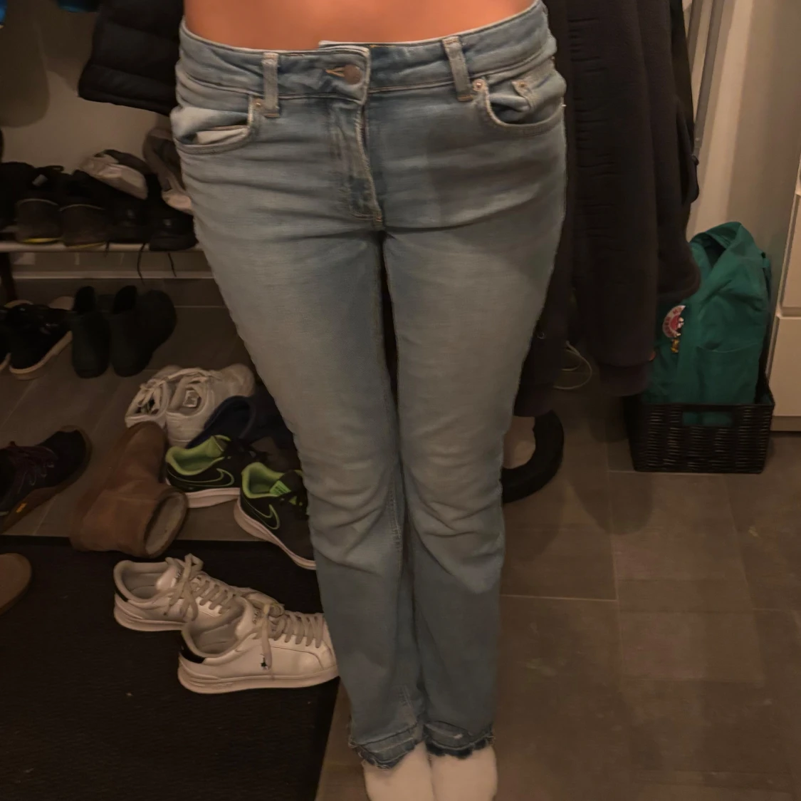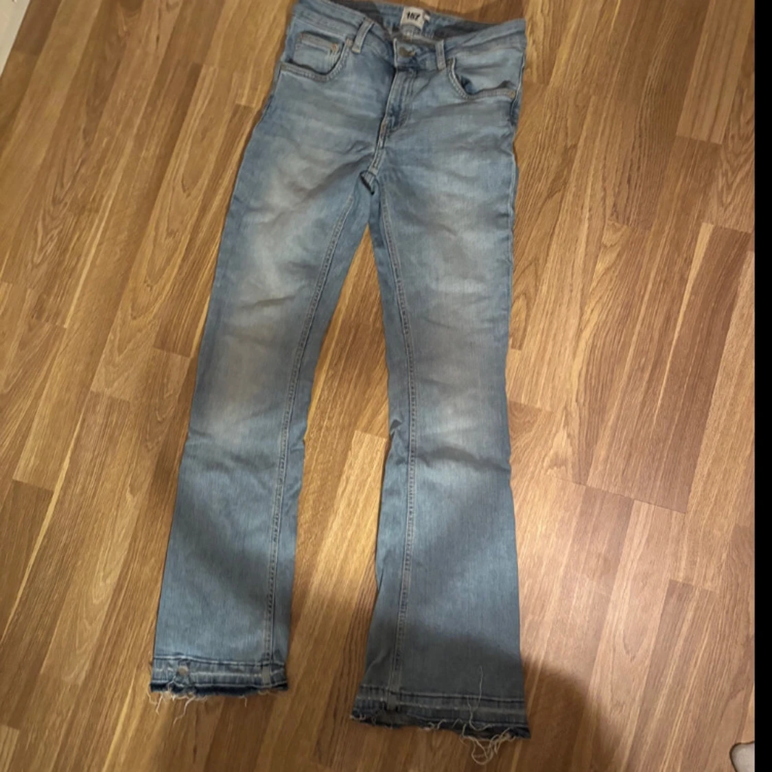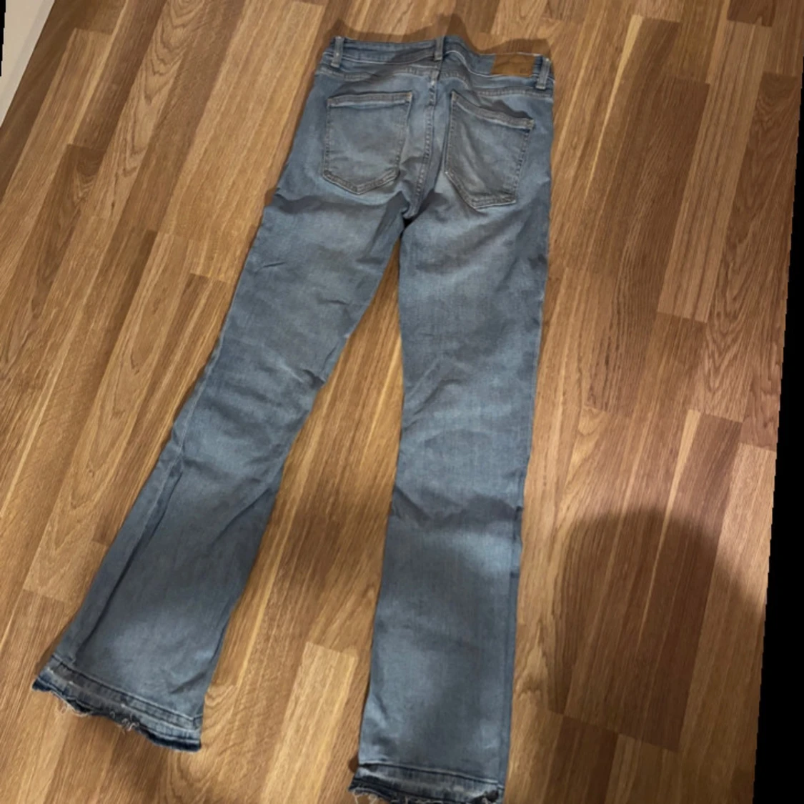 Säljer ett par super snygga blåa mid waist bootcut jeans från lager 157 då de är för stora för mig. Har sprätt upp byxorna där nere så de blir lite längre. Skriv gärna om ni har frågor eller vill ha fler bilder!💞😊💘