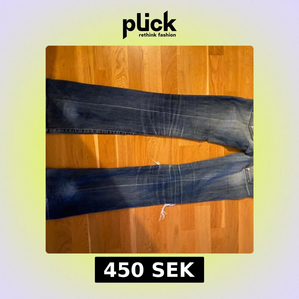 Säljer mina jättecoola blå bootcut/raka jeans från Replay med slitningar och hål på ena benet. Dom är väldigt unika och har snygga broderade detaljer på bakfickorna. För långa för mig som är 157. 💓