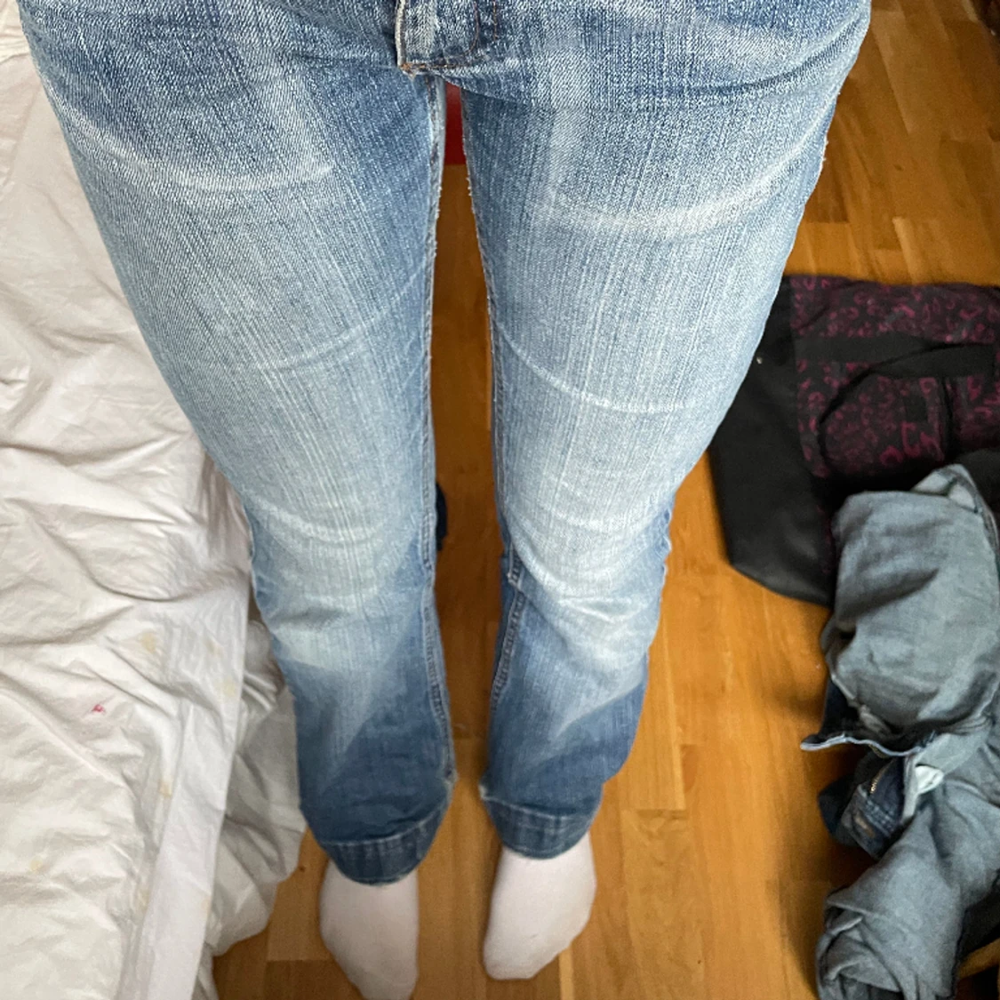 Ljusblå jeans från vila i hårt denim säljer för att de är för små. 27w och 30/32l