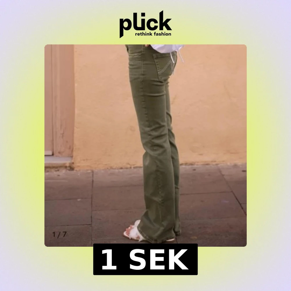 Snygga olivgröna byxor med bootcut-snitt och klassiska fickor bak. Byxorna har en figurnära passform upptill och är tillverkade i ett mjukt bomullsmaterial. Perfekta för dig som vill ha en avslappnad men trendig look.