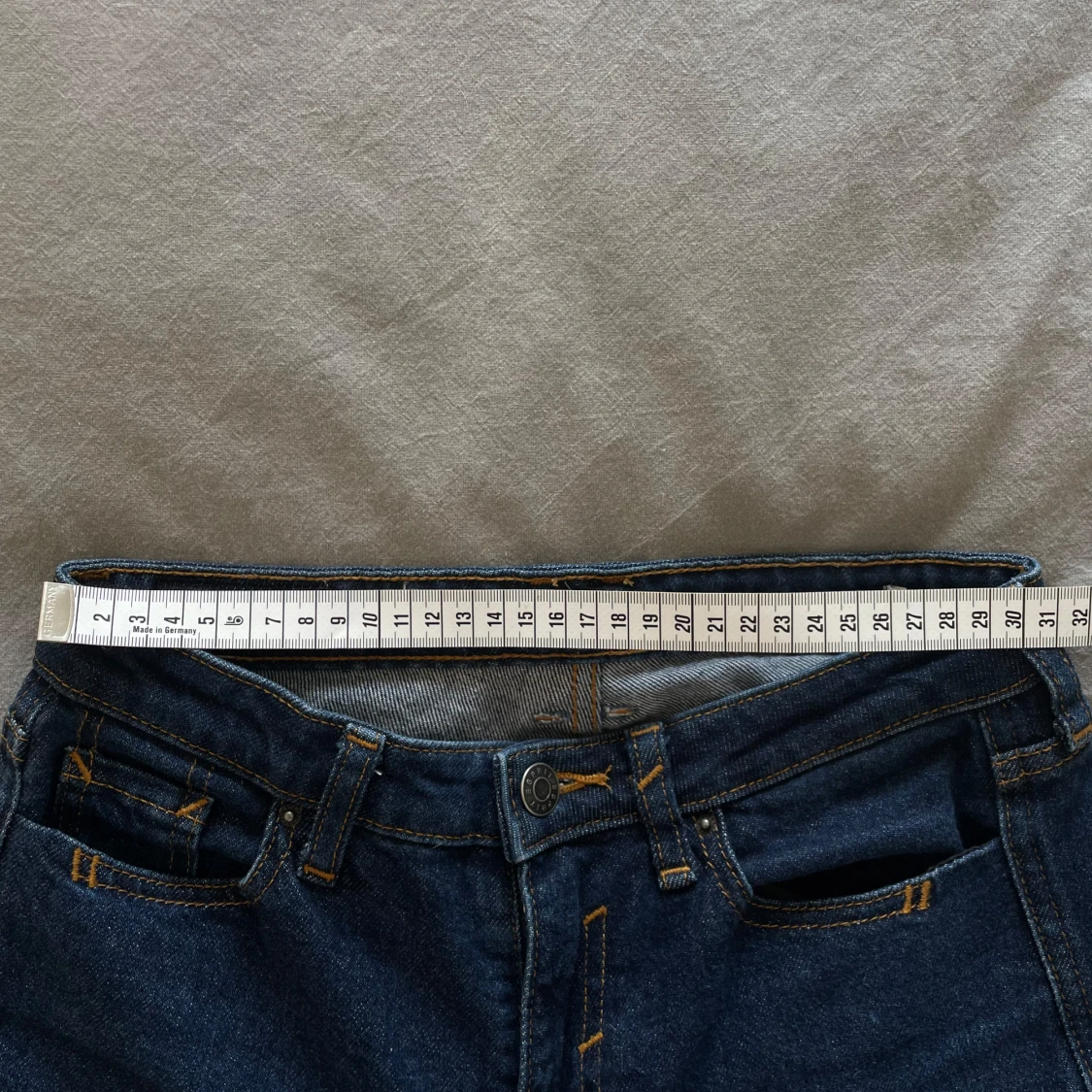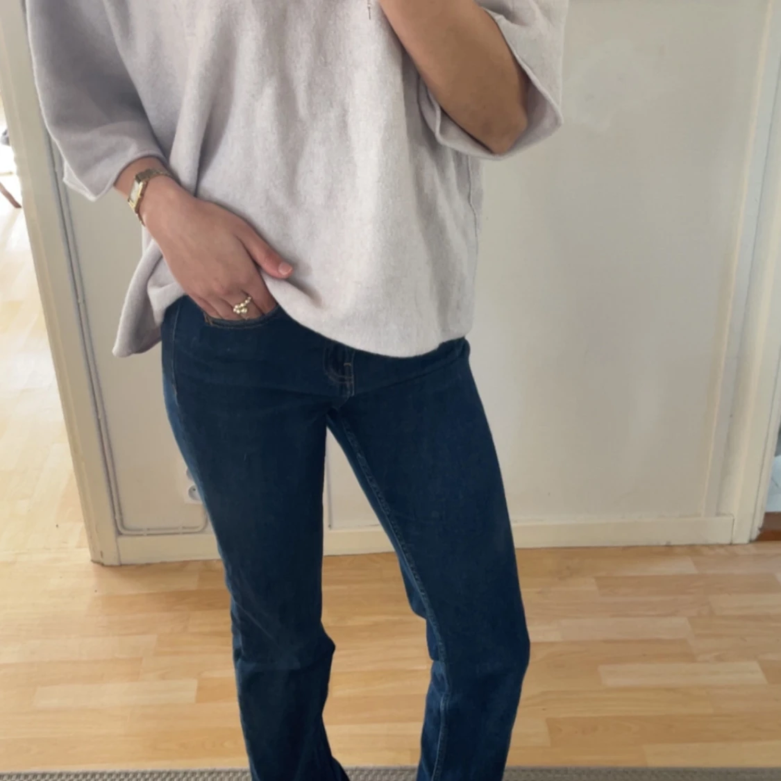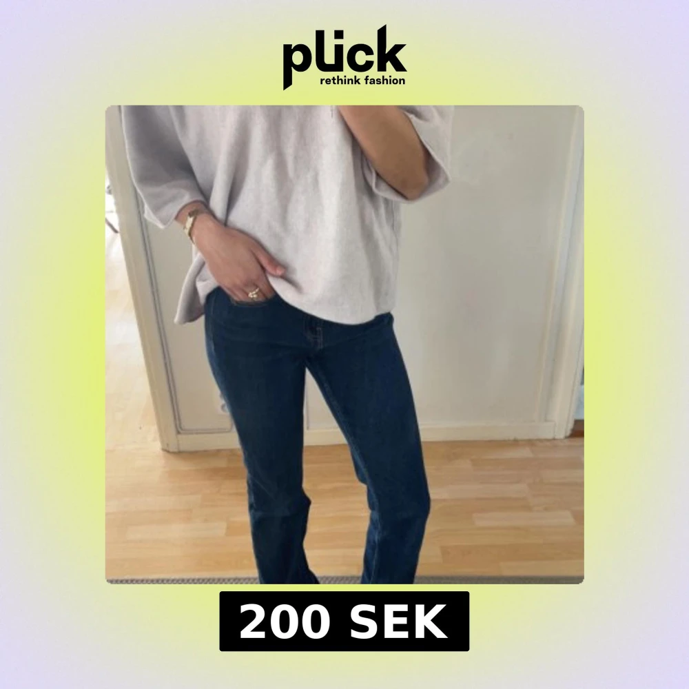 Snygga mörkblå jeans i midrise med bootcut, stål 25/34 (XS). De har en normal passform och sitter som ett smack. Jag är 160 för referens💕 skriv gärna för mer info eller bilder