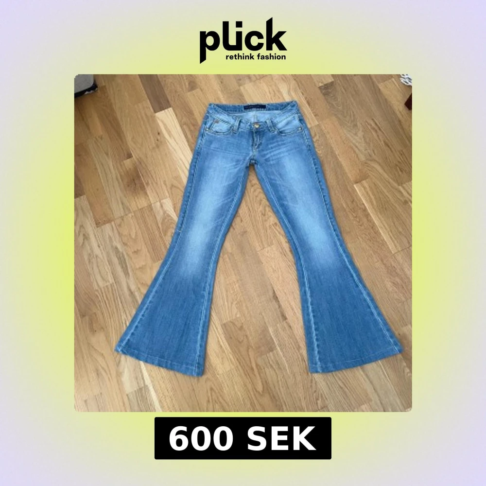 Supersnygga lågmidjade bootcut jeans i färgen blå! Vintage och går inte att få tag på längre! Storlek 9, midja: 34 cm, midjehöjd: 17 cm, innerben: 74 cm