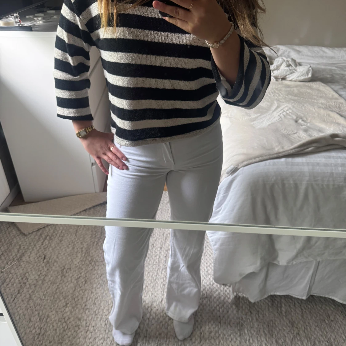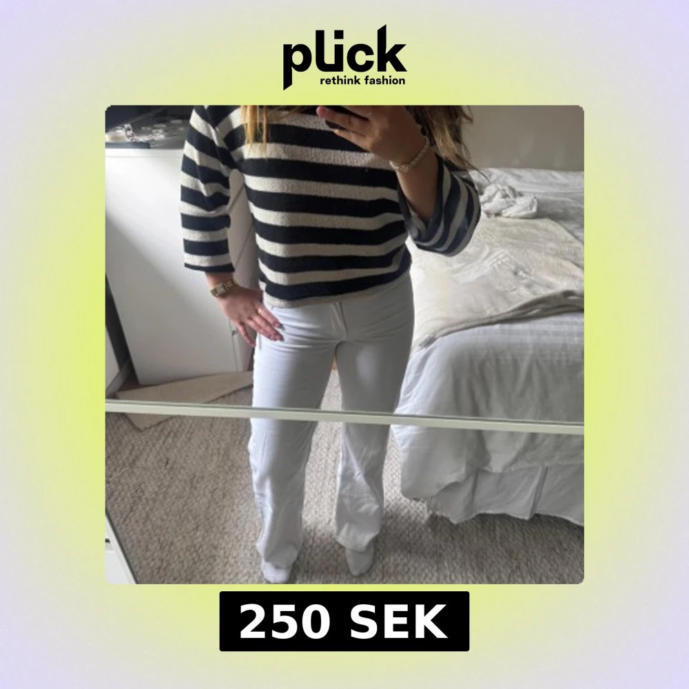 Säljer as snygga vita midwaist jeans från hm. Säljs då de sitter lite för tajt och är svåra att knäppa. Skulle ändå säga att strl är mellan XS-S