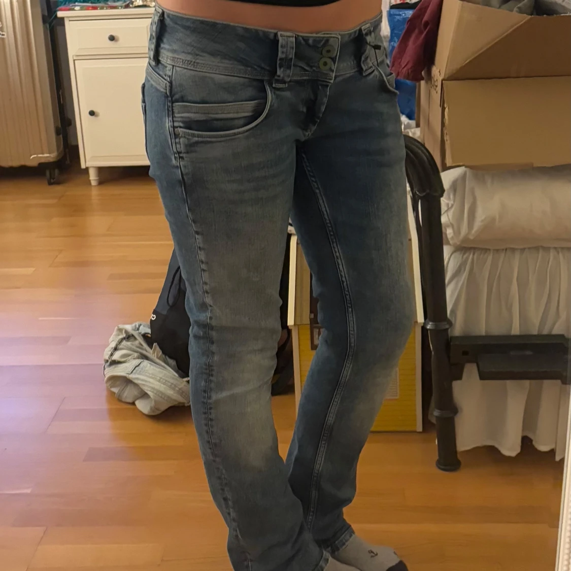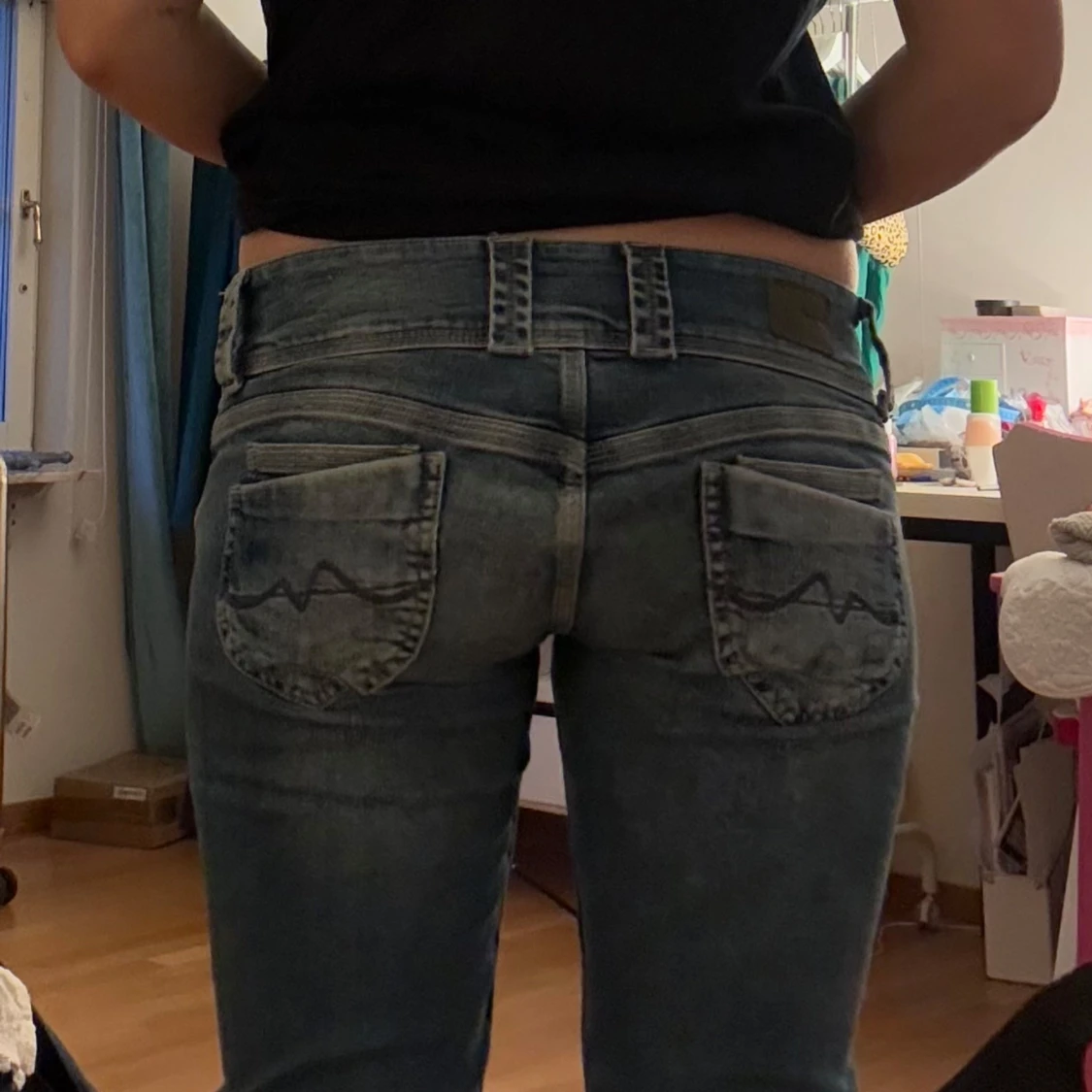 Säljer dessa lågmidjade blåa jeans från Pepe, samma modell som de gråa jag också säljer med blåa och större storlek. Den exakta storleken saknas men passar mig som är 173 och brukar ha M.