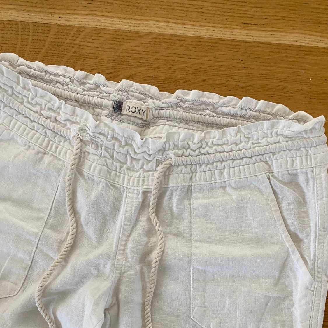 Roxy linnebyxor i stl M. En defekt på andra bilden men syns inte eller inget man tänker på. Har också (sprätt) upp dem längst ner för att de skulle bli längre, men de är inget man tänker på!! 💕☺️ annars är de superfina!