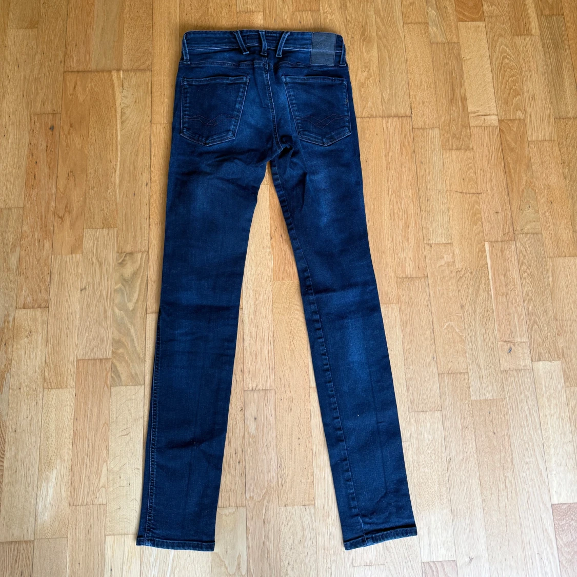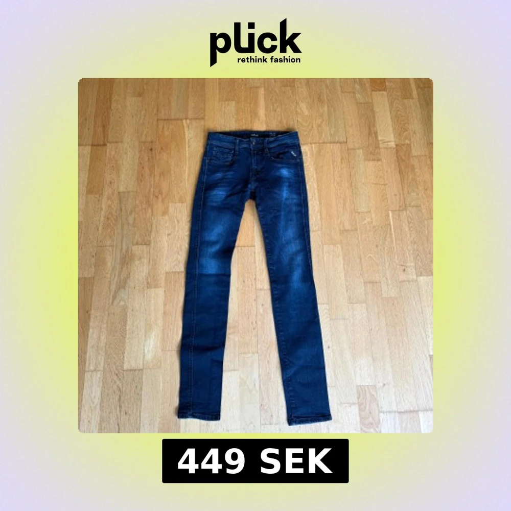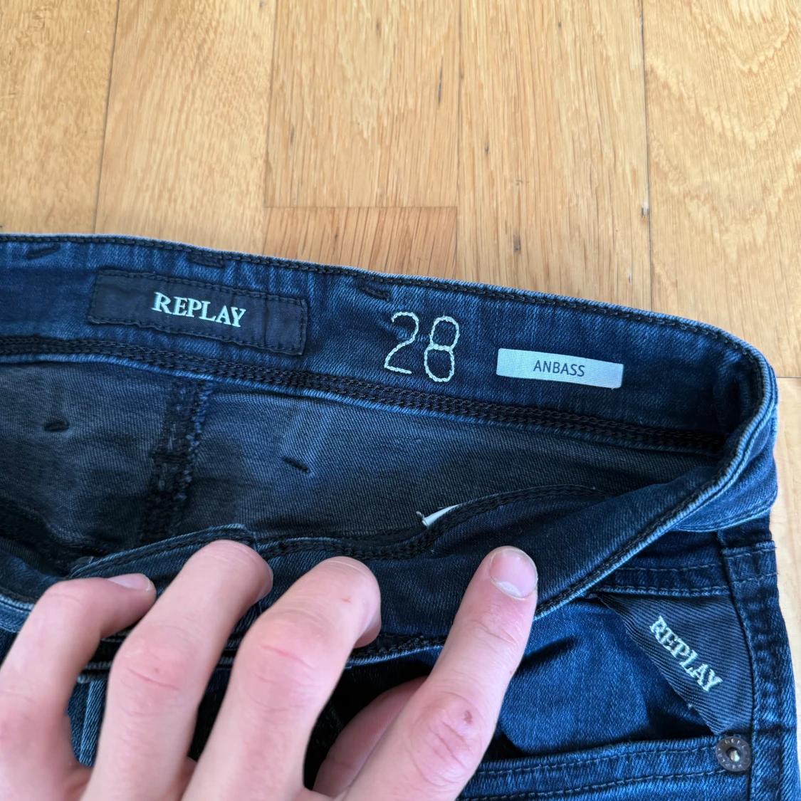 Säljer ett par Replay Anbass jeans i mörkblå. Dessa jenas är i top sick! Cond 9/10 använda sparsamt. Perfekt nu till sommaren. Size är W28 L30 vid fler frågor kontakta mig kan gå ner i pris vid snabb affär.