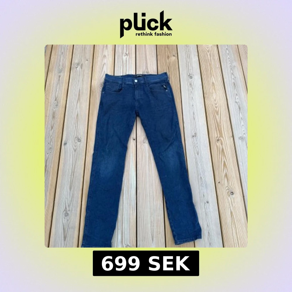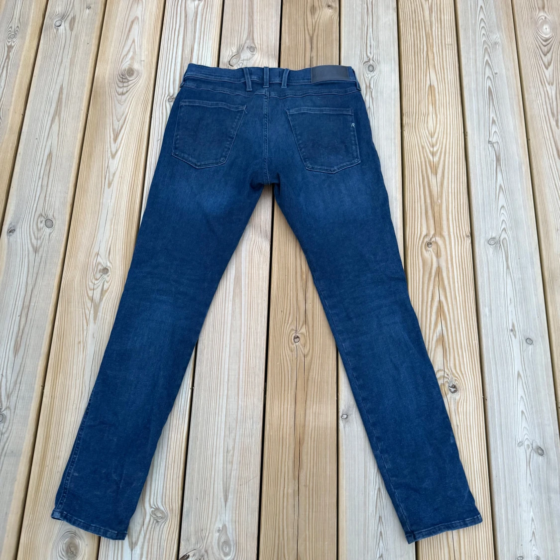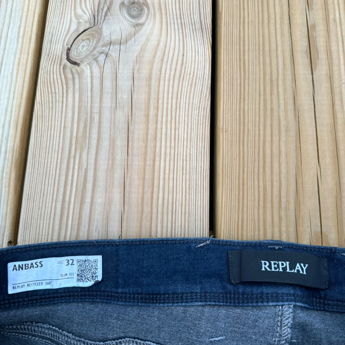 Snygga blå jeans från Replay, modell Anbass med slim fit. Klassisk femficksdesign, normal midja och raka ben. Jeansen är gjorda i mjukt denimtyg med lite stretch för extra komfort. Perfekta för dig som gillar en stilren och modern look.