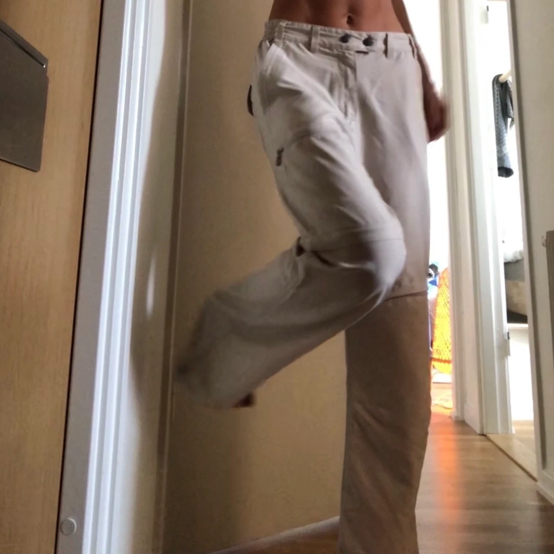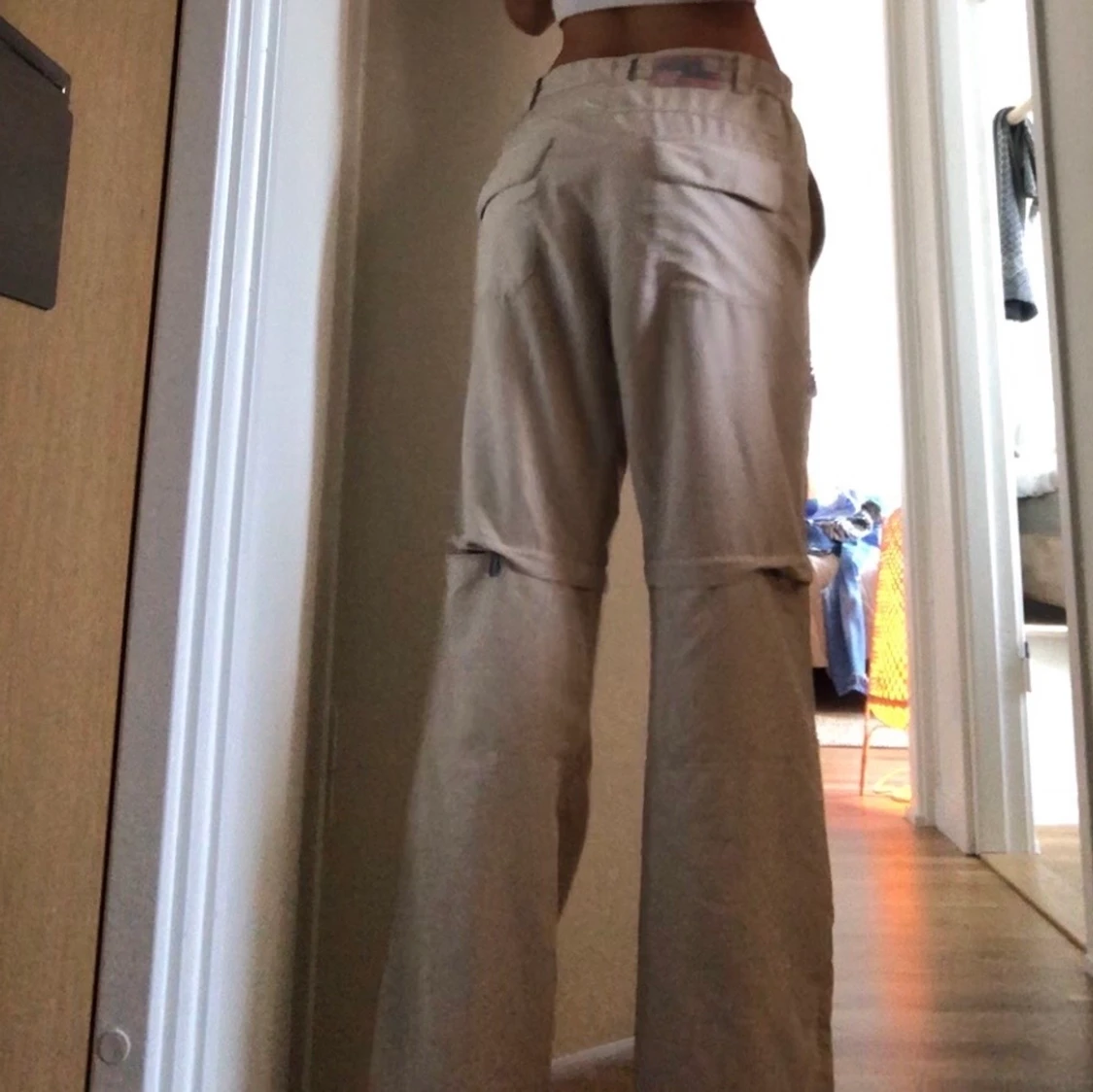 Supercoola beiga byxor med dragkedja detaljer!! (Kan göras till shorts också) passar en 34-38
