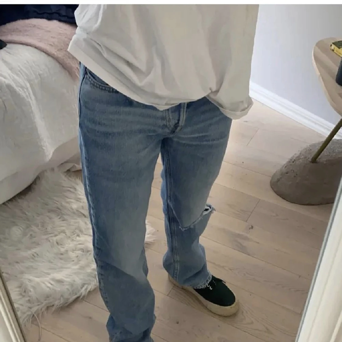 Säljer dessa sjukt snygga och unika jeansen💘Köpta på Plick men som nya🙌🏽. Säljer då dom liknar många som jag redan har. Skriv om ni har några funderingar💘💘