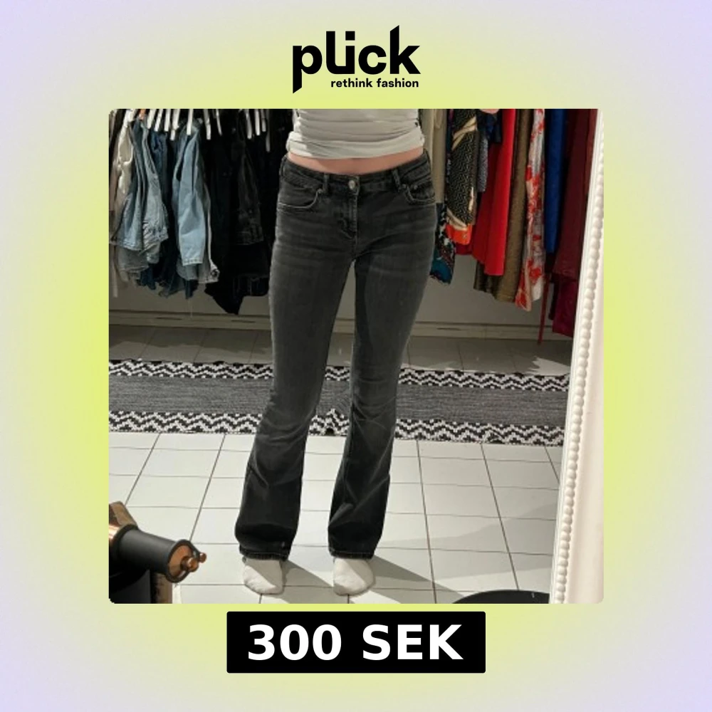 Snygga svarta lowwaist bootcut jeans med hög midja från zara. Perfekta för en stilren look. Den har en liten slitning på innersidan av midjan men inget som märks på(fråga om bild).