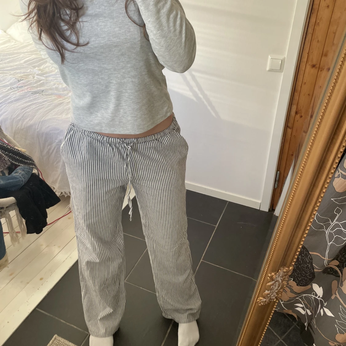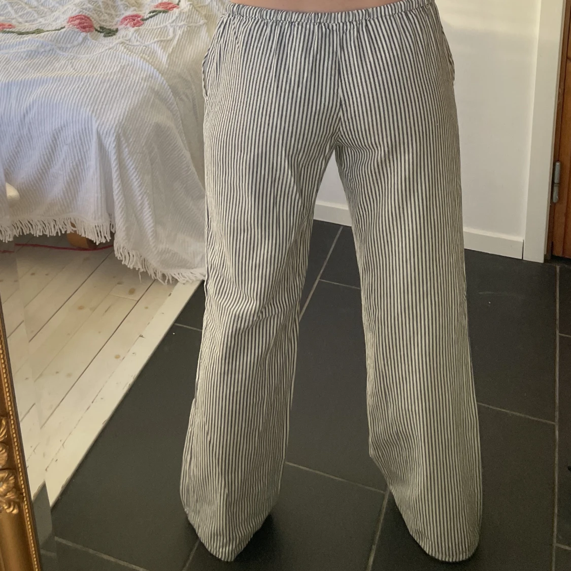 Lågmidjade linnebyxor i storlek M. Randiga i vitt och mörkblått/svart. Bara testade!! Skriv för fler bilder eller funderingar💭🤗