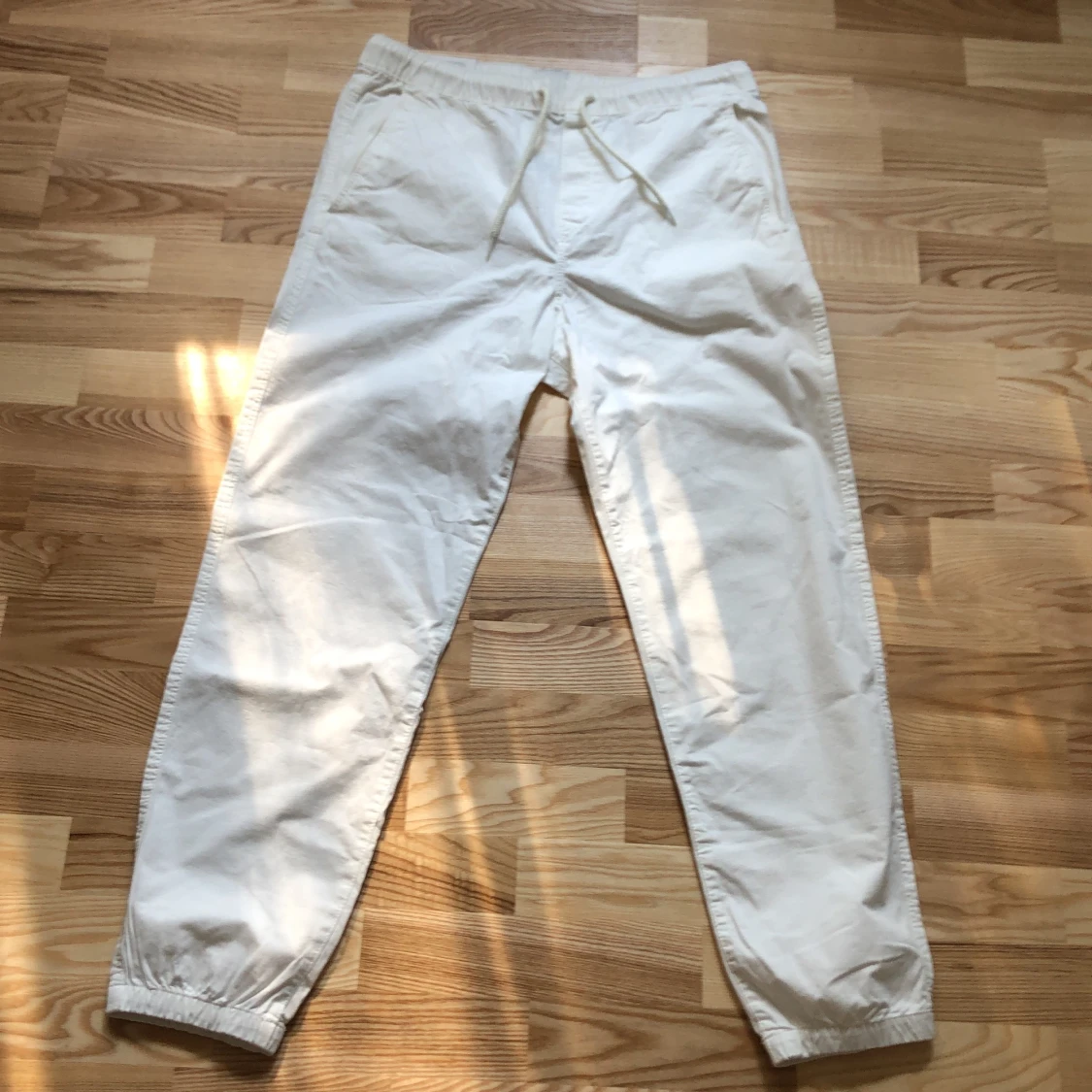 Säljer ett par vita byxor, storlek M, aldrig andvänt då dom är för stora på mig,