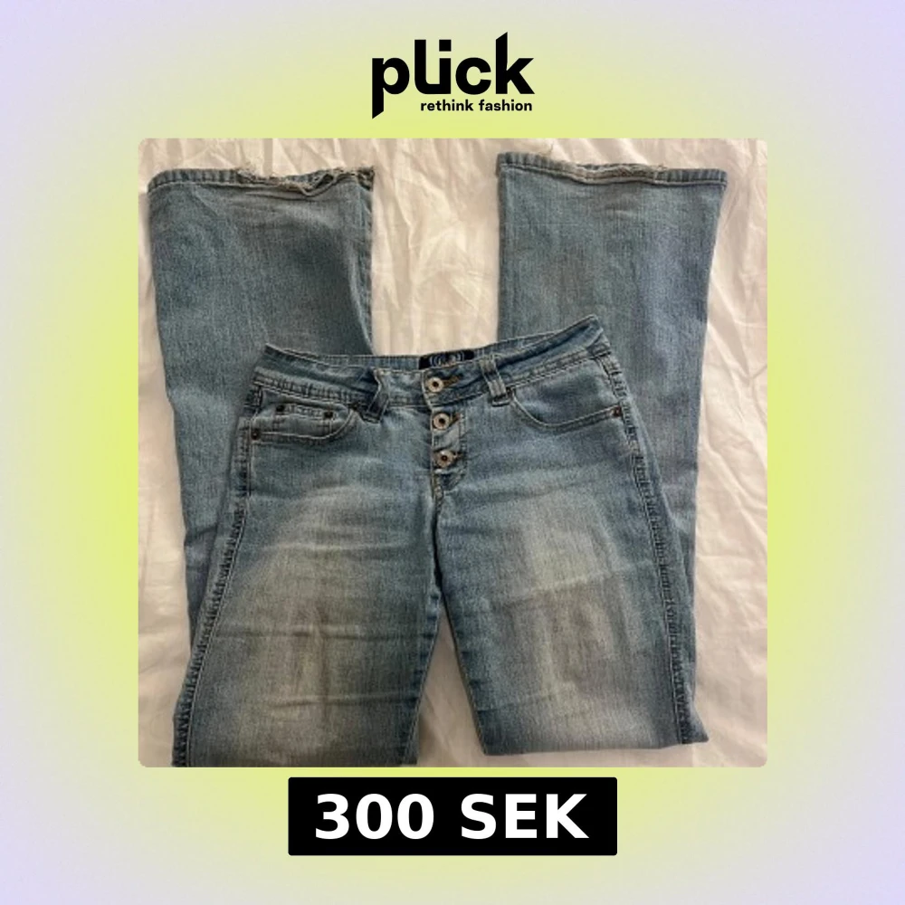 Snygga blå jeans med en klassisk look och knappar framtill. De har en bootcut-stil och är perfekta för en avslappnad stil. Fickor både fram och bak ger en praktisk touch.