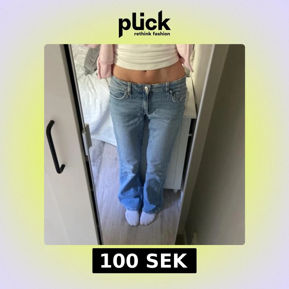 Säljer ett par ljusblå bootcut jeans från Gina Tricot. Den här modellen säljs inte längre och dom är bekväma och fina.🩷💘