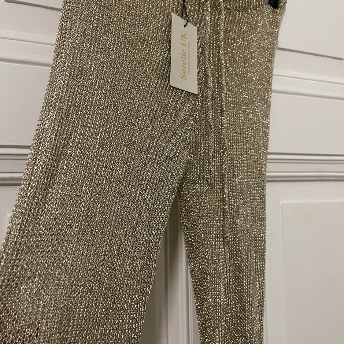 Pris kan diskuteras!💗 Ett par metallic byxor från Sorelle UK. ”Metallic” kallar dem materialet, byxor som är glittriga(enkelt förklarat) Kolla deras instagram/tiktok för fler bilder&videos. 💕Dessa byxor är tyvärr för långa för mig.. passar bra annars💕