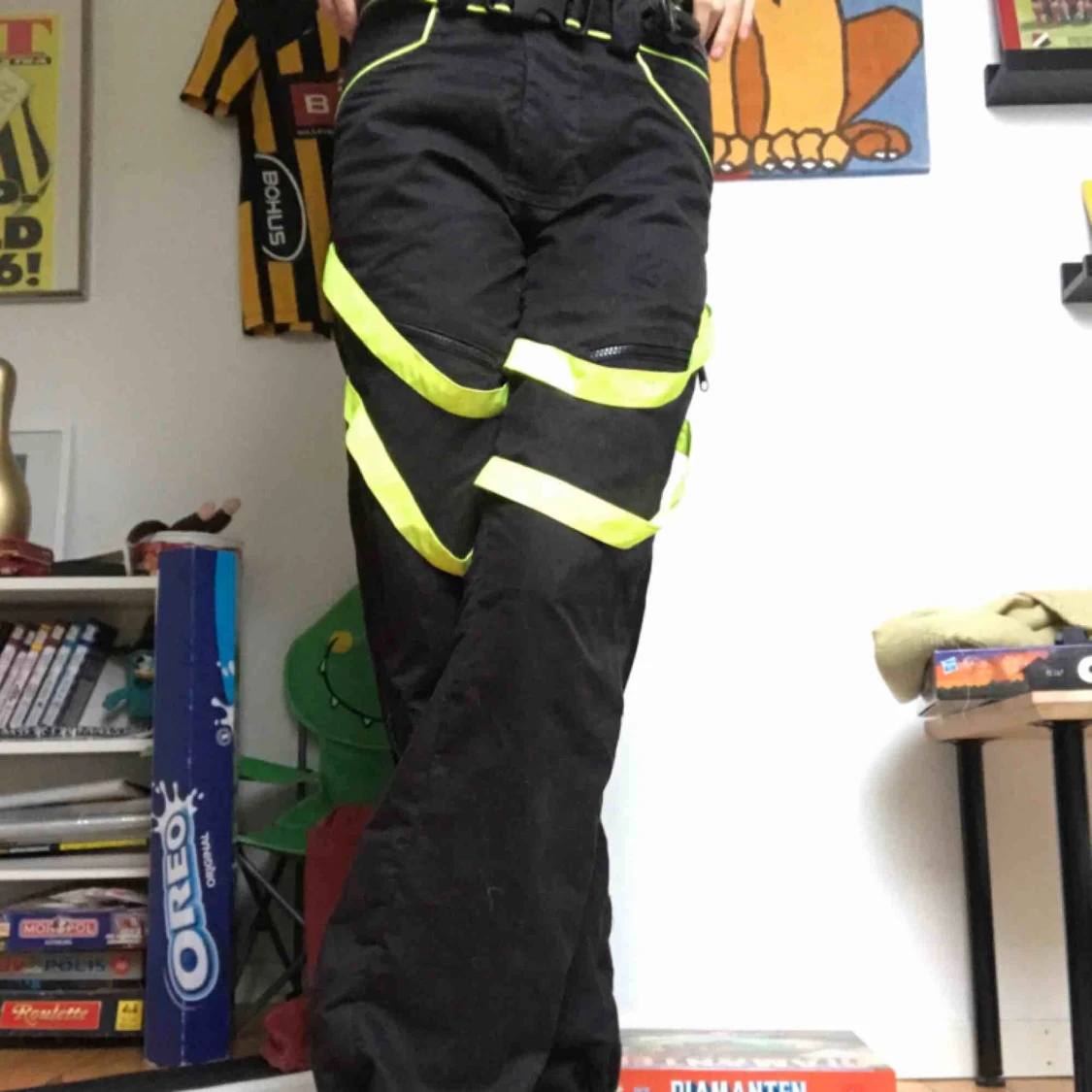 Ascoola ”rave” liknande byxor! Gröna/gula reflexremmar över benen🔥🔥 går även att dra upp med dragkedja på benen där man kan visa lite mer reflex (se på bild 3) 💘💘