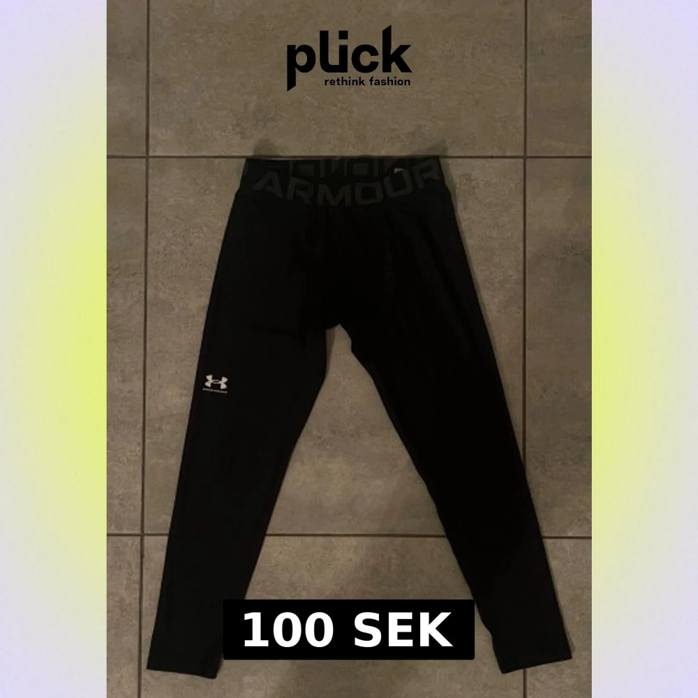 Svarta tights från Under Armour med logga på benet och bred resår i midjan med text. Sitter tight och är perfekta för träning. Gjorda i stretchigt syntetmaterial som andas och ger bra rörelsefrihet.