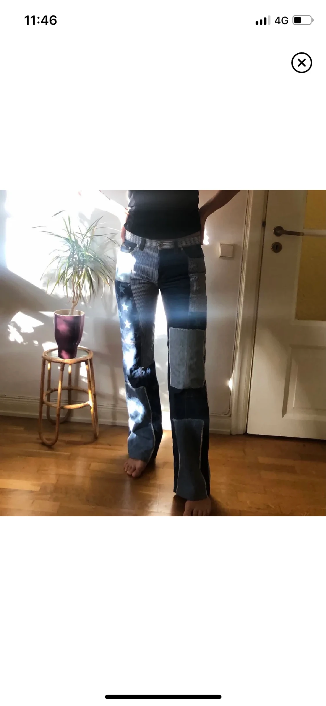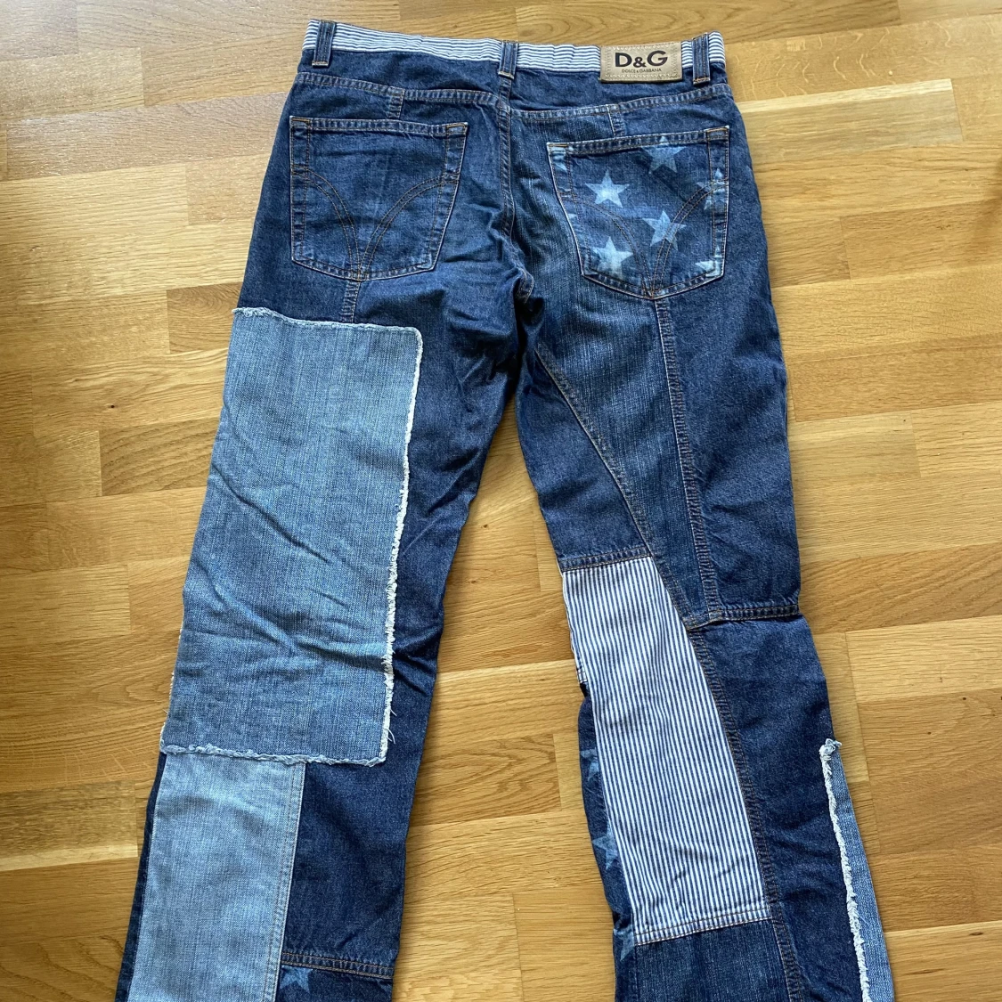 Så coola och unika jeans från Dolce & Gabbana. Köpta second hand. De är märkta storlek 30 och passar någon som har typ 38 i byxor. Jag är 169 cm och de är perfekt längd på mig. Längd innerbenet 81 cm. Midja 80 cm.
