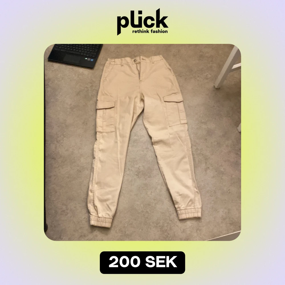 Säljer ett par snygga beige cargobyxor från Stay i storlek M. Byxorna har flera praktiska fickor och en bekväm passform med resår vid anklarna. Perfekta för en avslappnad stil eller vardagsäventyr. 🏞️