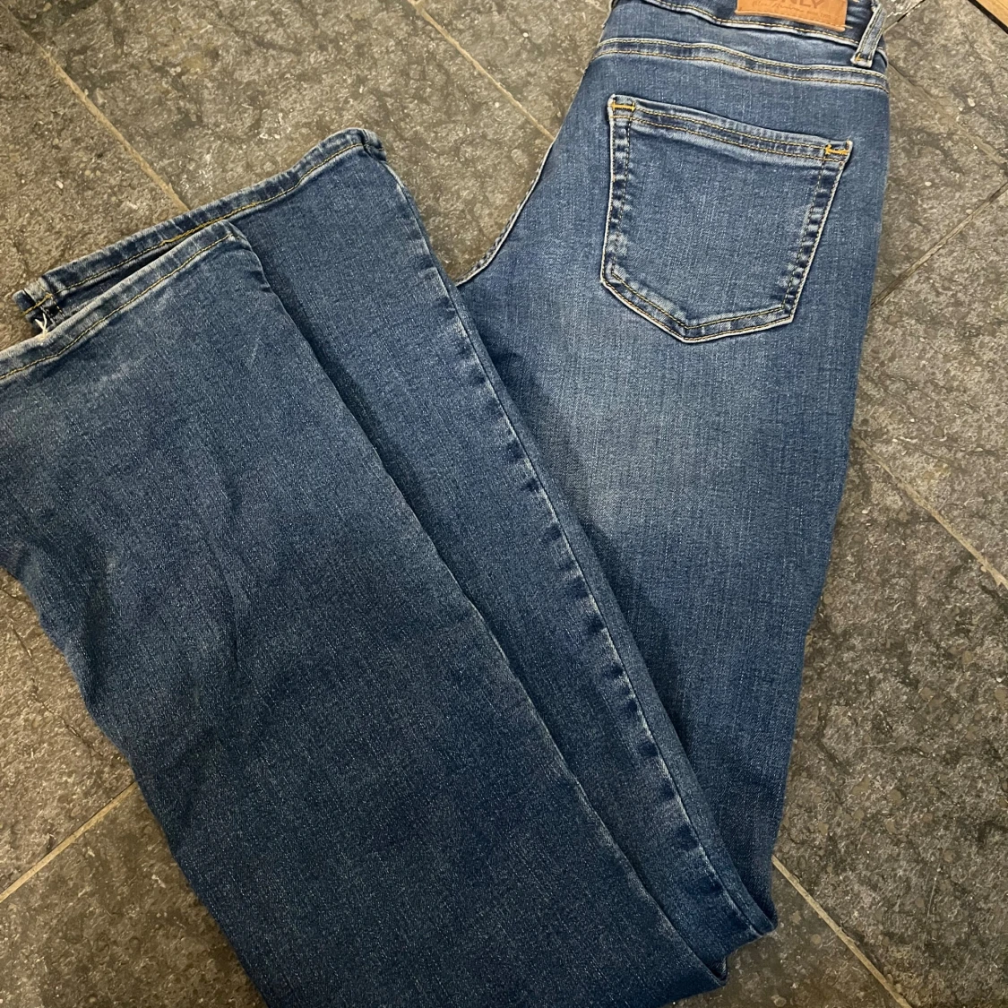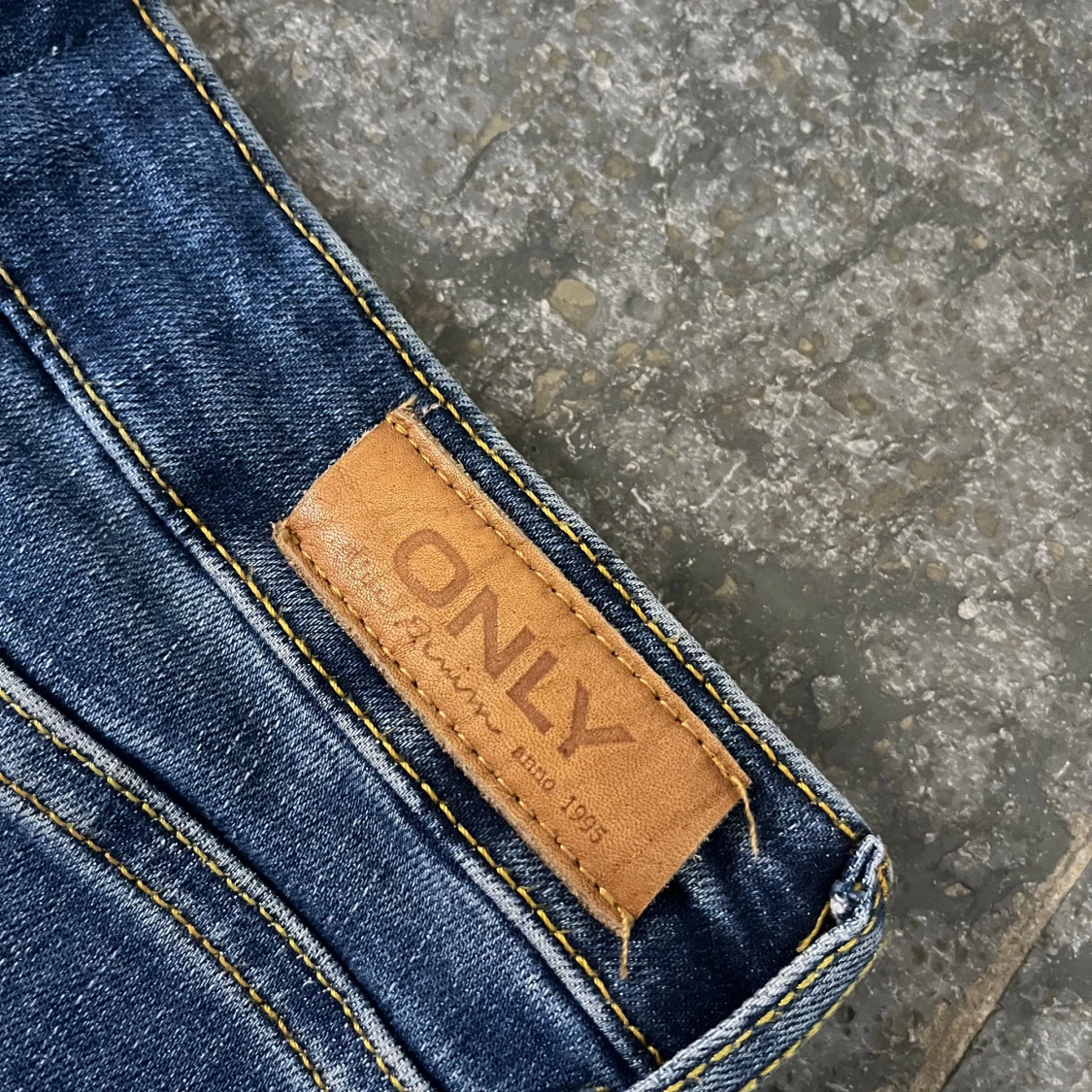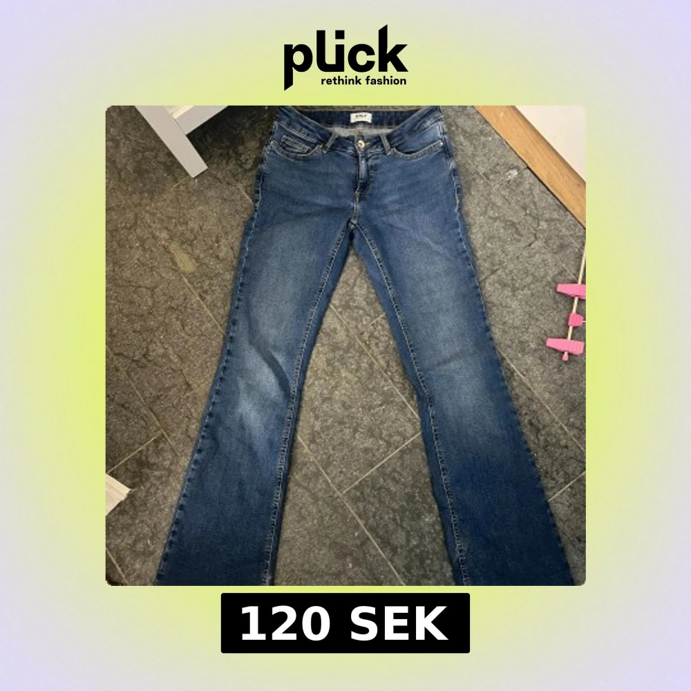 Storlek: S/34. Snygga blå lågmidjade bootcut-jeans från ONLY. Jeansen är tillverkade i mjukt denimtyg med lite stretch. Säljer för att de är för långa och tycker inte att de passar mig så bra💕Använda endast ett par enstaka gånger men med tanke på att det är för långa så är de lite slitna längst nere men inget som man lägger märke till💕Hör av dig om du har frågor eller funderingar💓