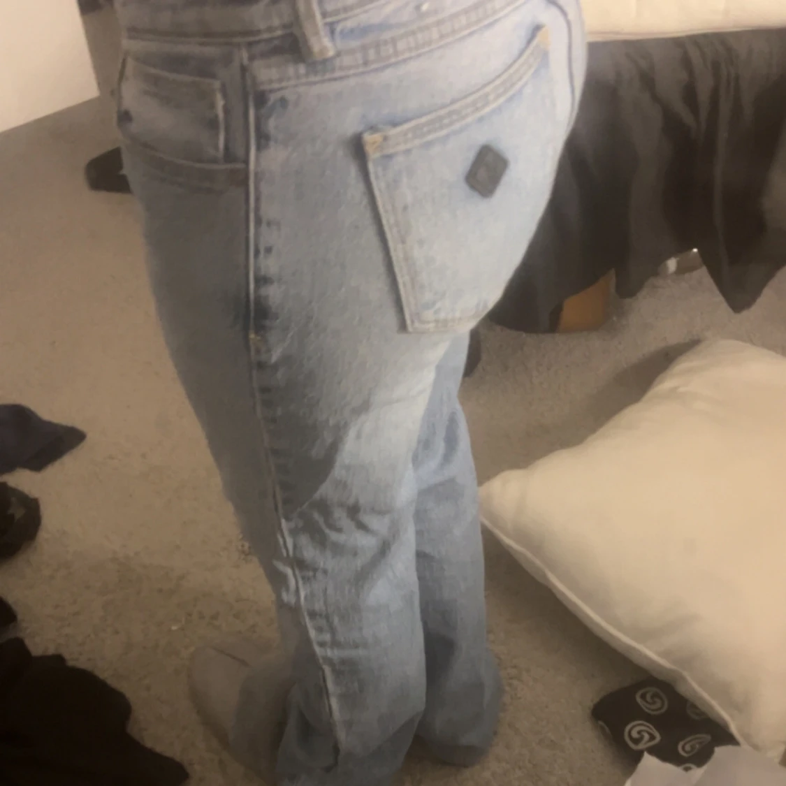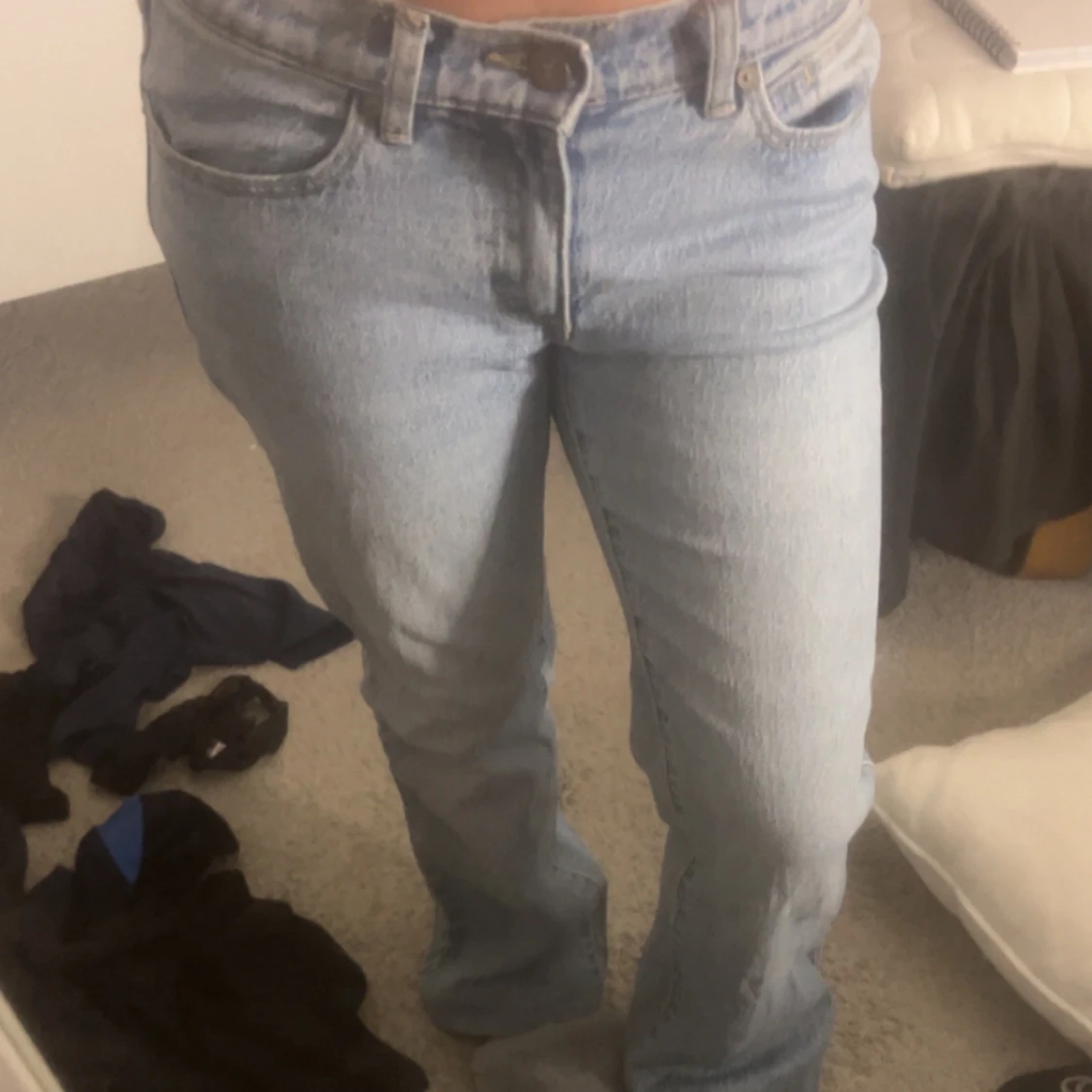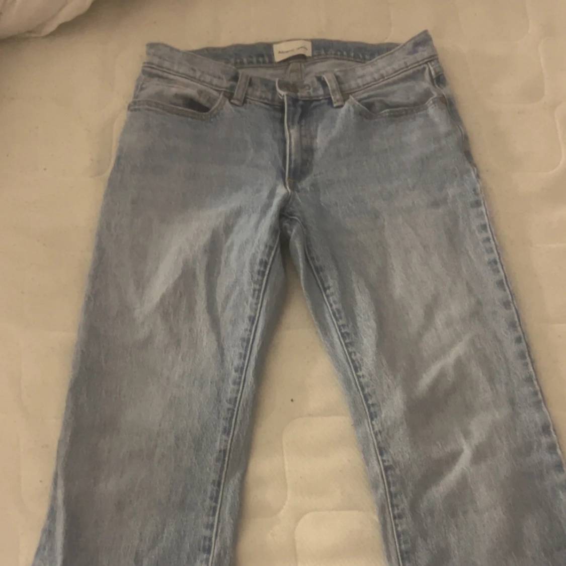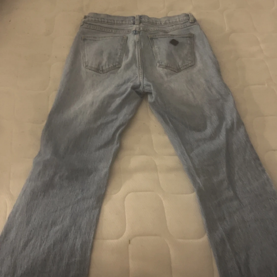 Säljer ett par ljusblå jeans från Abrand Jeans med klassisk femficksdesign och bootcut-ben. Jeansen har låg midja. Använt fåtal gånger. Innerbenslängden är ca 68cm och passar mig perfekt som är 155. Köpte för 1500