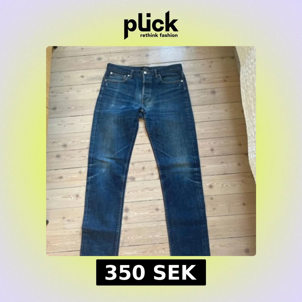 Säljer ett par klassiska A.P.C. Petit New Standard jeans i mörkblå tvätt. Jeansen har rak passform, fem fickor och snygga kontrastsömmar. Tillverkade i robust bomullsdenim med en stilren look som funkar till allt.