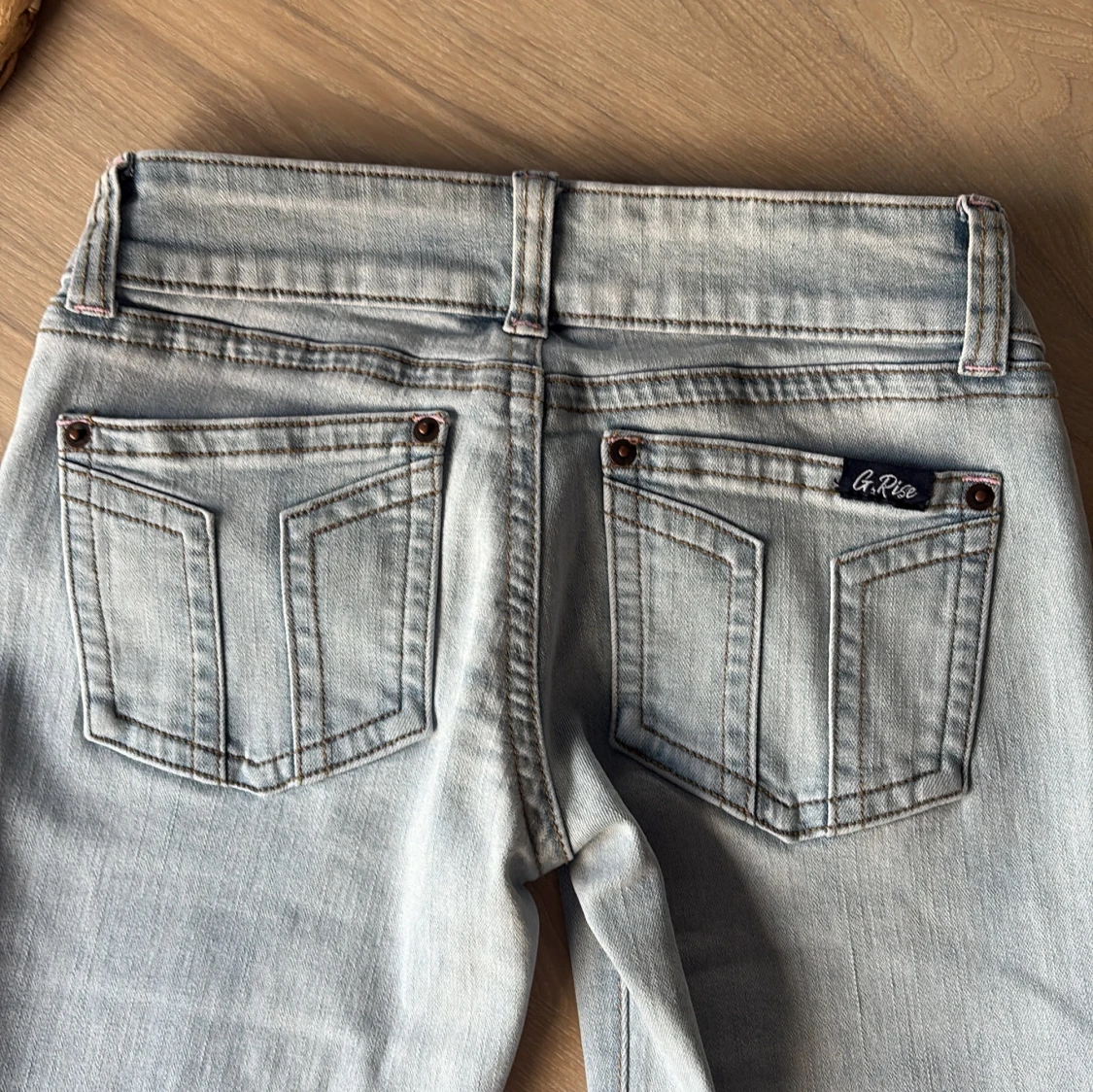 Säljer ett par ljusblå jeansbyxor från G-Rise då dom är alldeles för långa, dom är väldigt lågmidjade, raka i benen och är helt oanvända!