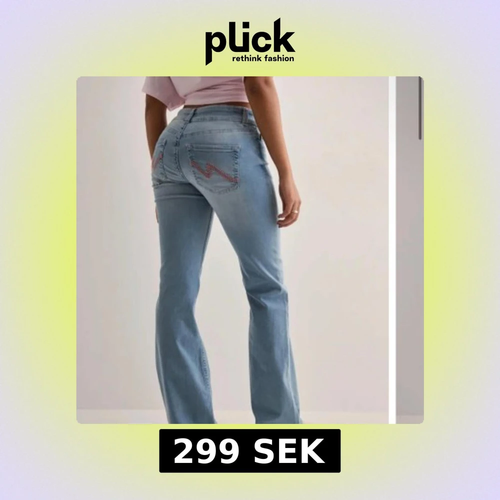Snygga ljusblå jeans med bootcut-modell och låg midja. Jeansen har coola rosa broderade detaljer på bakfickorna och klassisk femficksdesign. Tillverkade i mjukt denimtyg som sitter skönt och ger en avslappnad vibe. Hör av dig vid frågor!🥰
